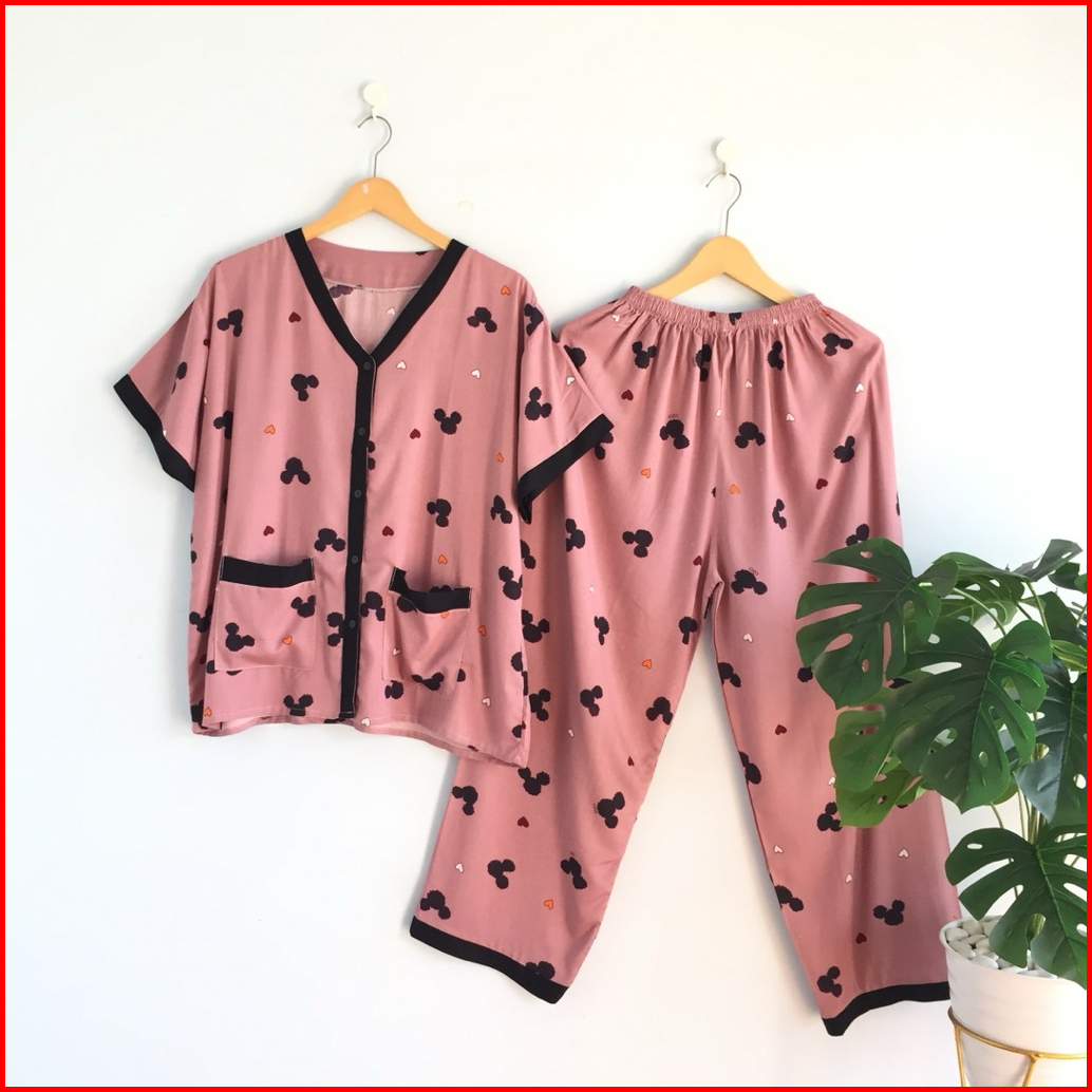 Yoona Set Piyama Kancing Rayon Piyama Set Jumbo