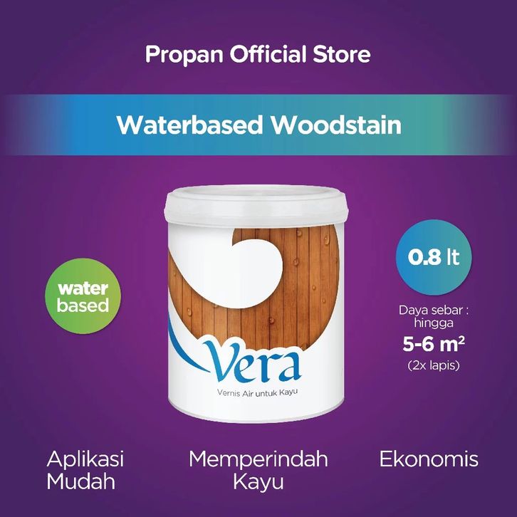 Cat Kayu Mengkilap PROPAN Vera VA-08 Waterbased Wood Stain Cat Kayu Plitur Kayu Ekonomis 0,8L Cat Kayu Propan