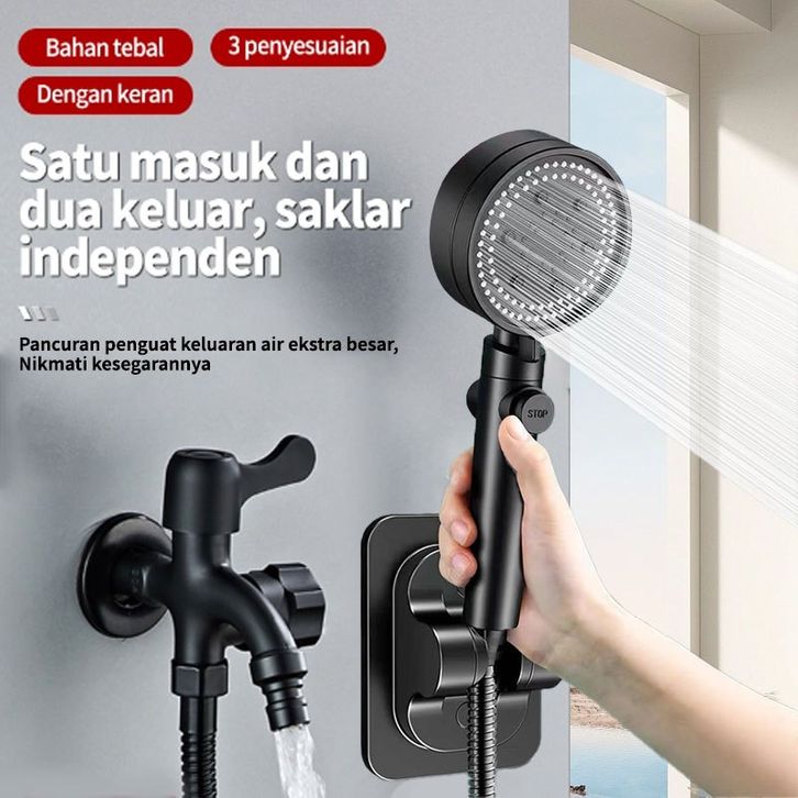 Kepala Shower Mandi Hitam Premium 5 Mode Air Shower Set Head Shower Handheld Shower Kamar Mandi Minimalis Stylish