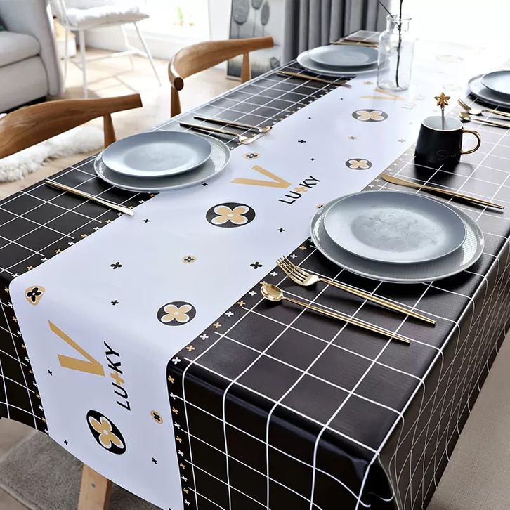 Taplak Meja Makan Waterproof Bahan PEVA Anti Air Desain Pola Kotak Kotak Tikar Meja Ukuran 137x183cm Stylish