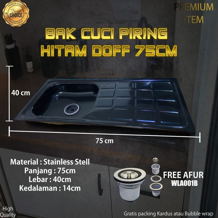 Kitchen Sink Hitam Wastafel Bak Cuci Piring 75cm Fullset Paket Lengkap