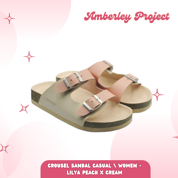 AMBERLEY PROJECT SHOE & SLIPPER Sandal Wanita Crousel Sandal Casual Women Lilya Peach X Cream Sandal Cewek
