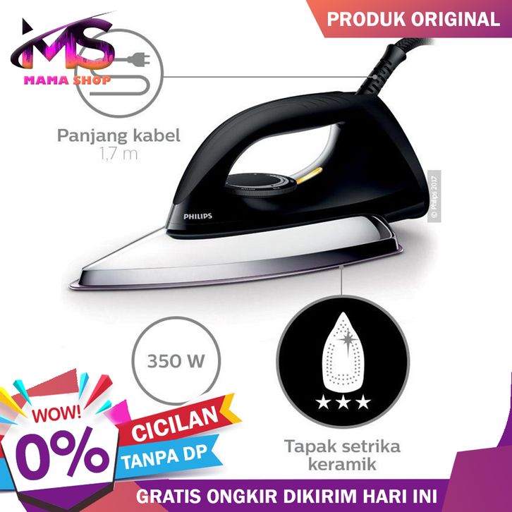 BARU SETRIKA PHILIPS DRY IRON / SETRIKA HD 1173 HITAM ELEGAN