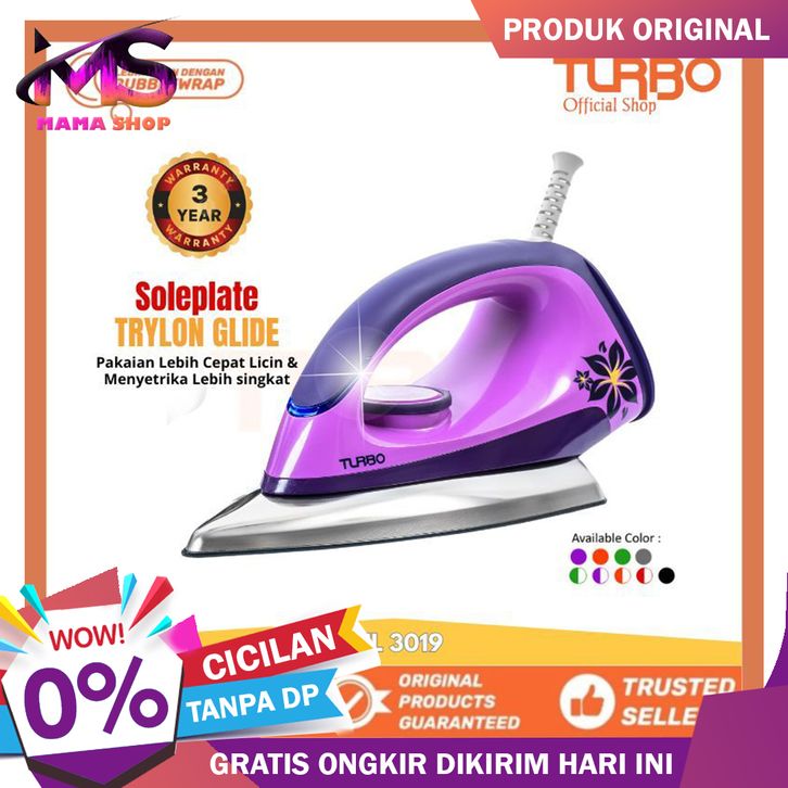 BARU [UNGU] TURBO NEW DRY IRON / SETRIKA KERING EHL3019 4 WARNA 350 WATT TELFON ANTI LENGKET GARANSI RESMI