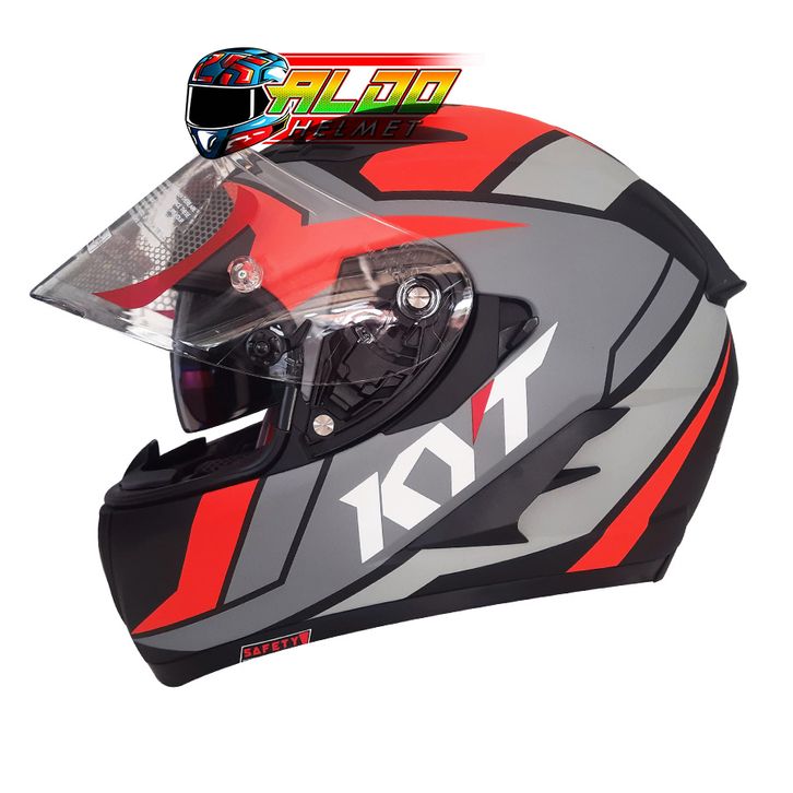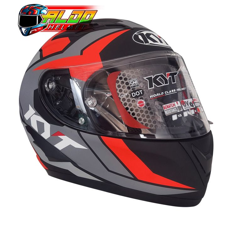 HELM KYT ORIGINAL / KYT FALCON /HELM KYT FULL FACE MOTIF RAID BLACK MATT RED KACA BIASA/ HELM SNI & DOT