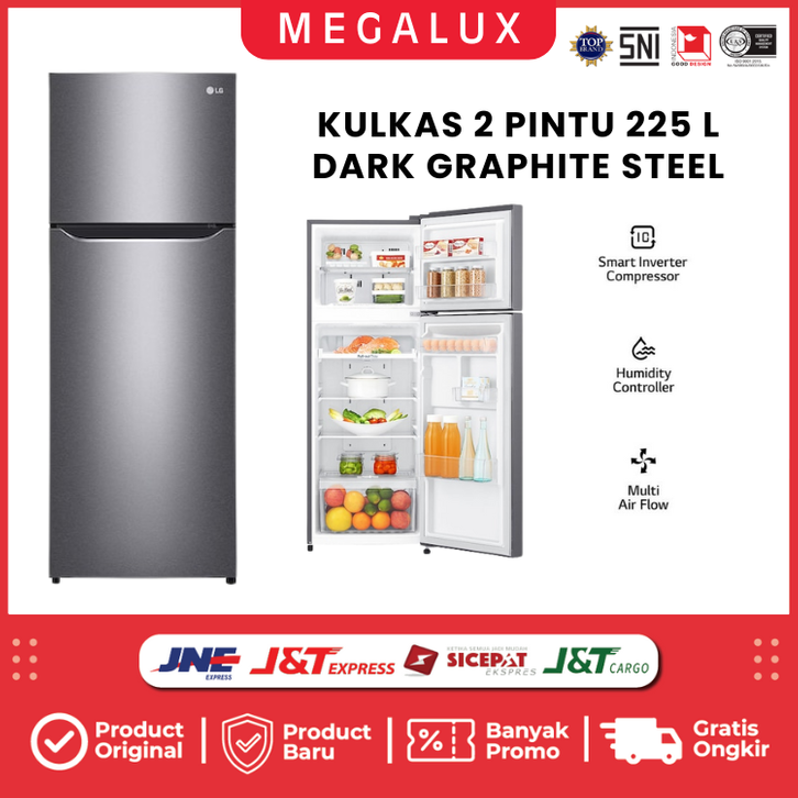 KULKAS LG 2 PINTU 210 225 LITER GNB202SQIB GNB222SQIB INVERTER NO FROST TANPA BUNGA ES GARANSI RESMI