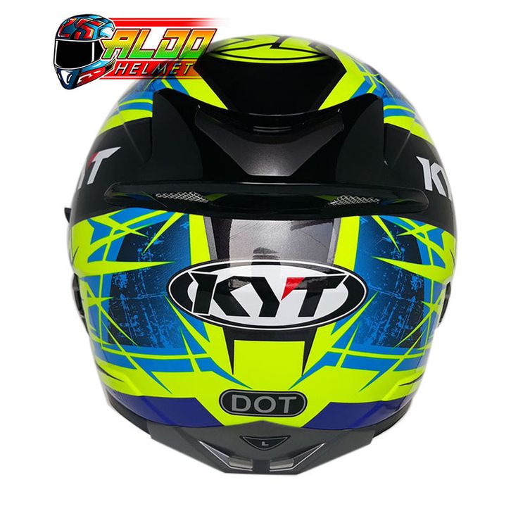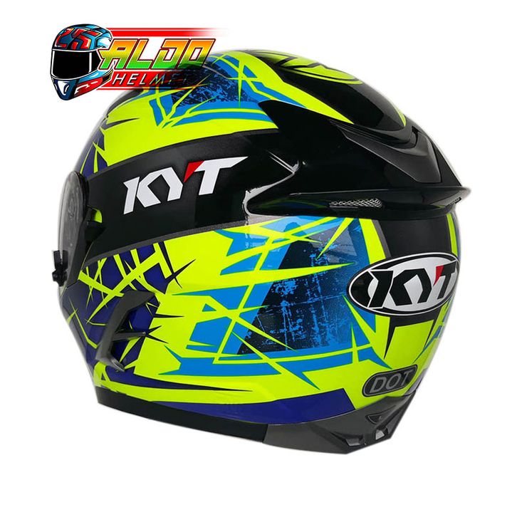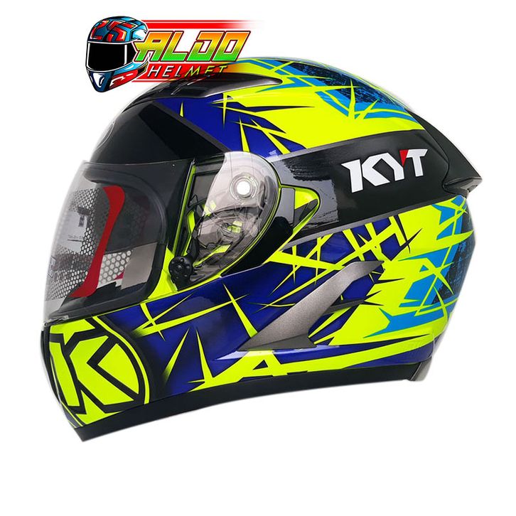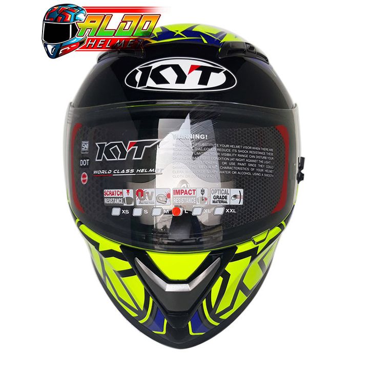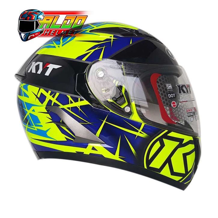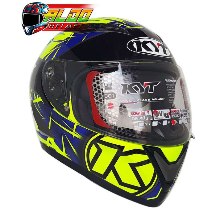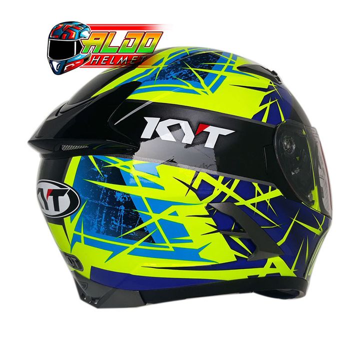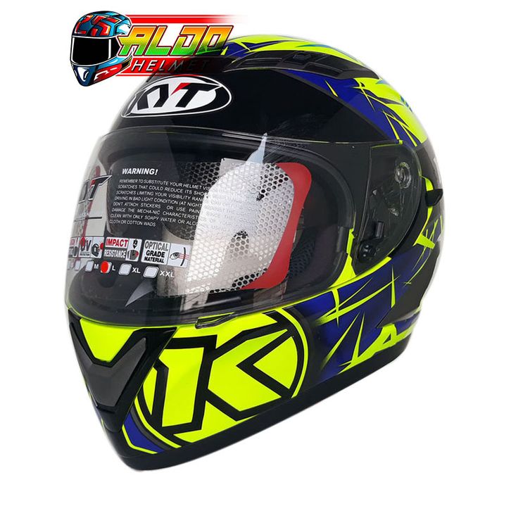 HELM KYT ORIGINAL / KYT FALCON /HELM KYT FULL FACE MOTIF SPIKE YELLOW FLUO BLACK KACA BIASA/ HELM SNI & DOT