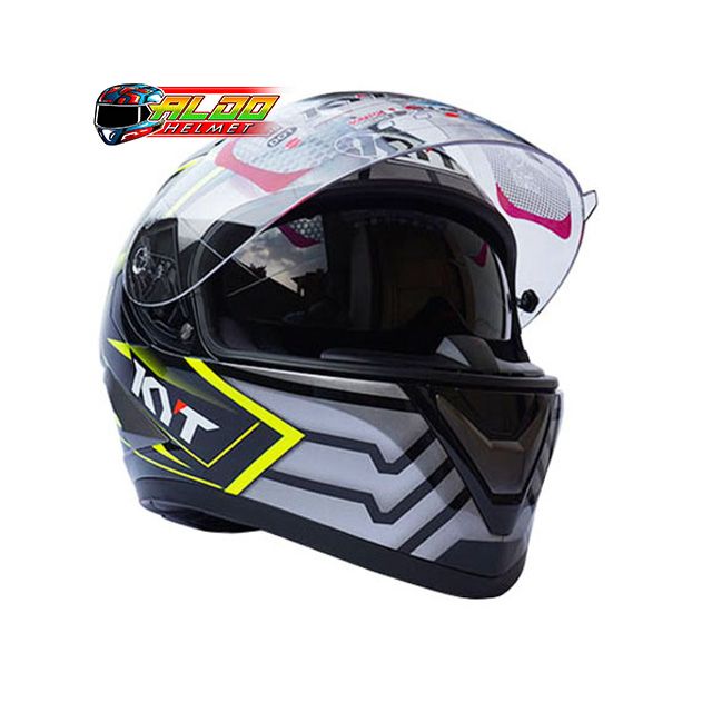 HELM KYT ORIGINAL / KYT FALCON /HELM KYT FULL FACE MOTIF ARMOUR YELLOW FLUO BLACK KACA BIASA/ HELM SNI & DOT
