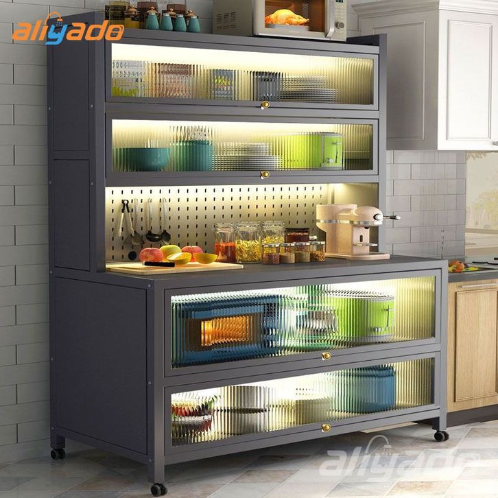 Rak serbaguna Rak piring minimalis modern Rak Dapur Penyimpanan Microwave Lemari Piring Rak Multi-Lapisan