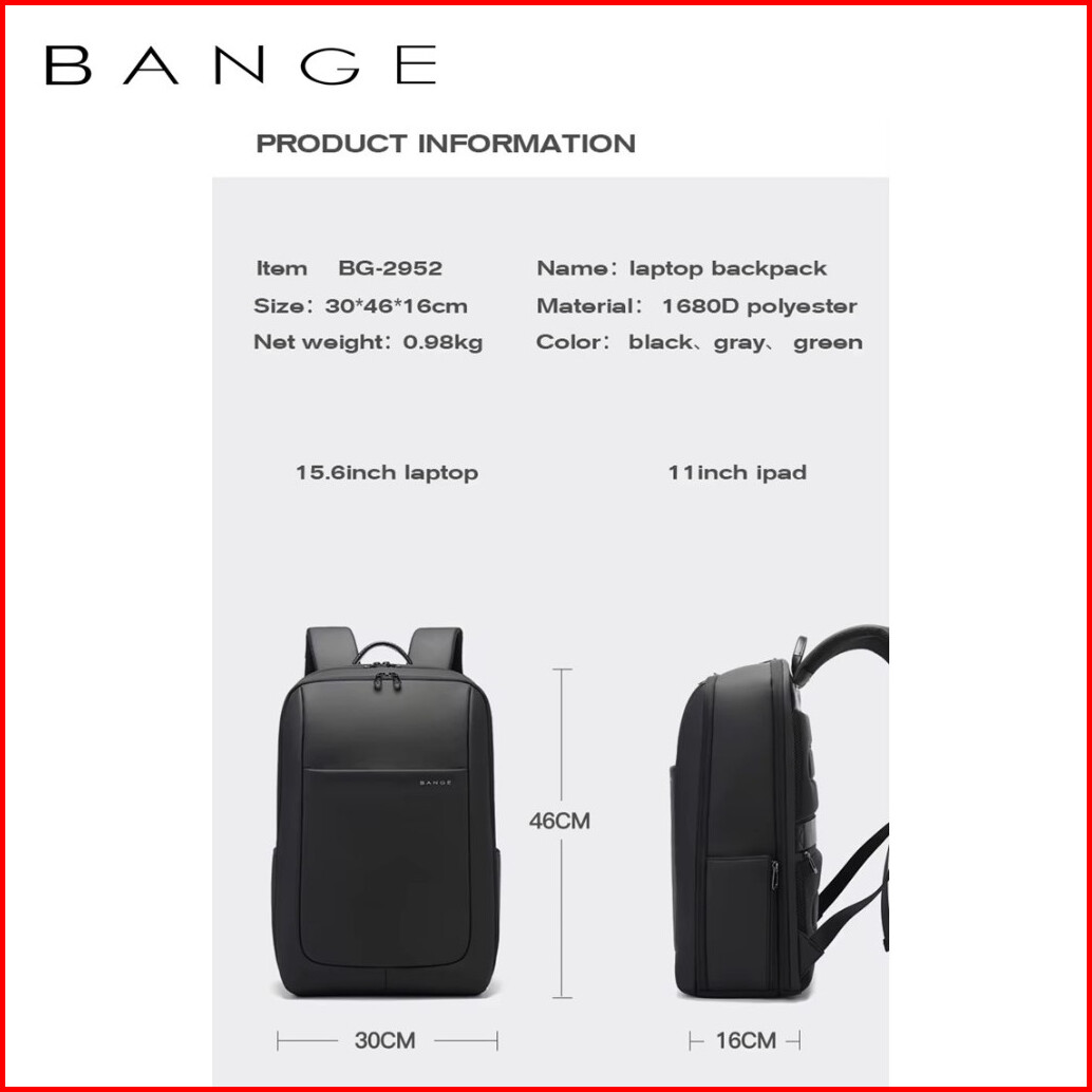 Bange Bg2952 Tas Ransel Backpack Laptop Kerja Pria 15.6 Inch