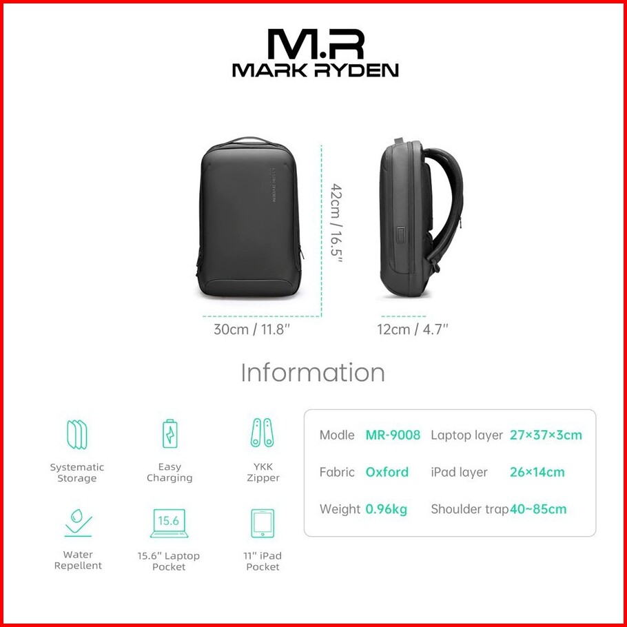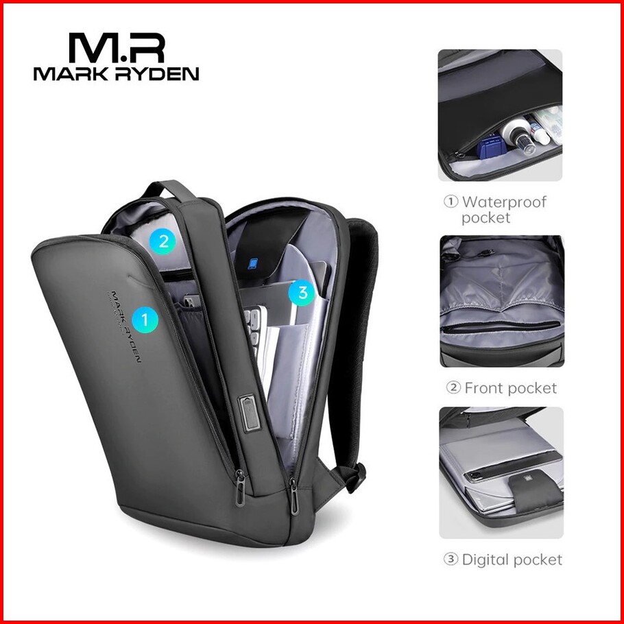 Mr9008 Tas Backpack Mark Ryden Original Ransel Laptop 15.6 Inch Usb