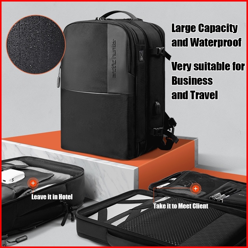 B00382 Tas Arctic Hunter Bag Backpack Ransel Cowok Pria Kerja Kantor Travel Laptop 14 17 Ipad 9.7 Usb Detachable 2 In 1
