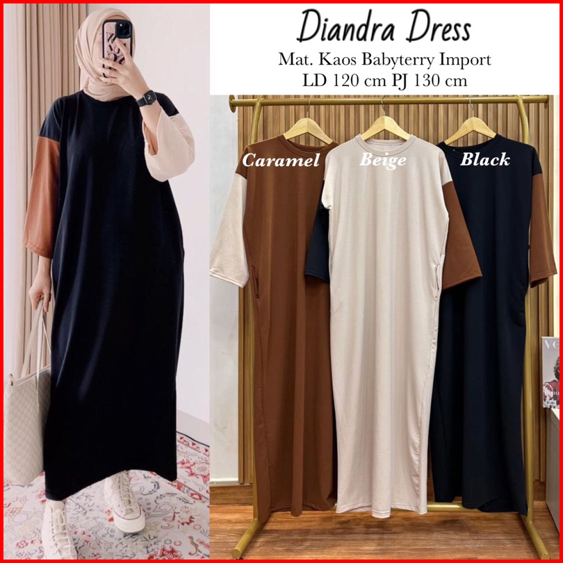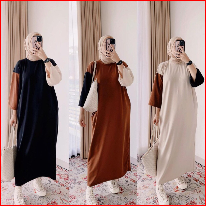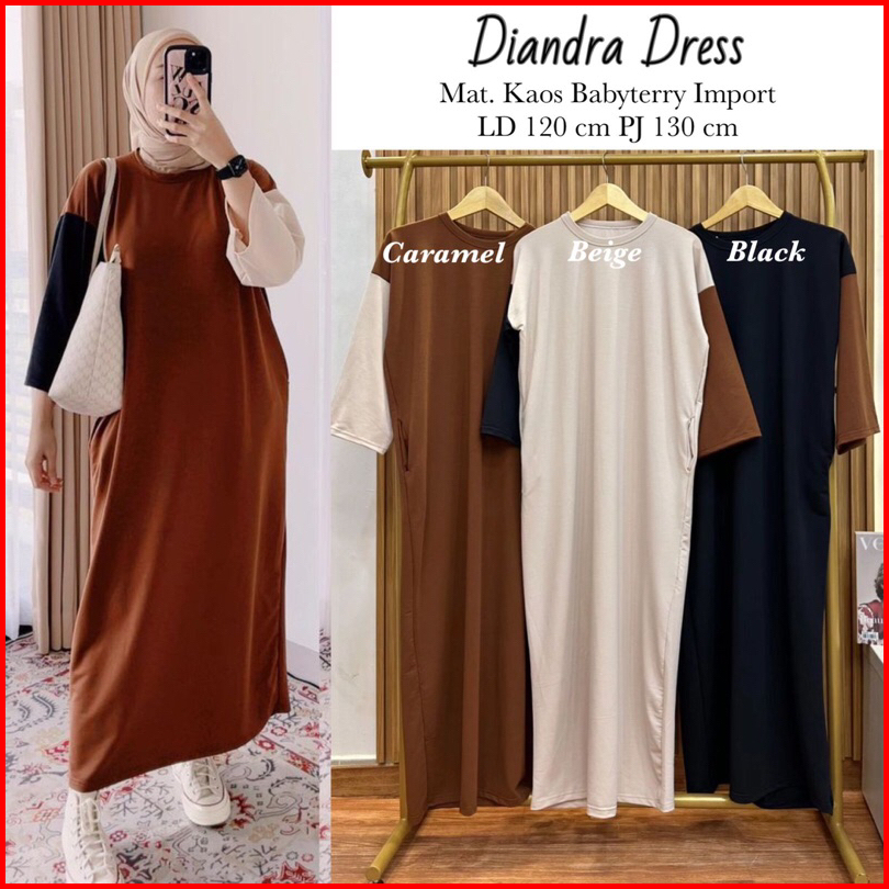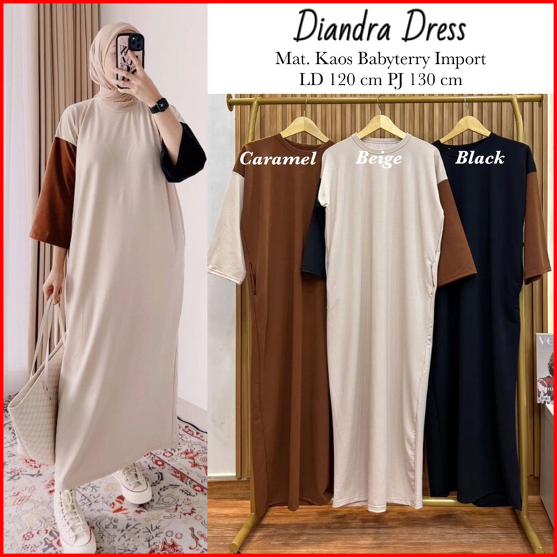 Diandra Midi Dress Kaos Polos Babyterry Import Gamis Kaos Babyterry
