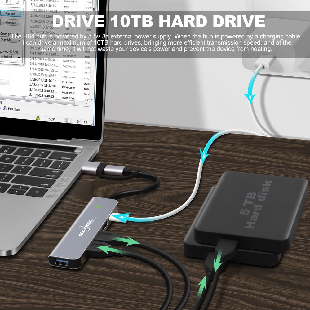 (FLASH SALE) GOOJODOQ USB Hub 3.0 Type C Adaptor Laptop for Macbook Accessories Extension PD Charger Port