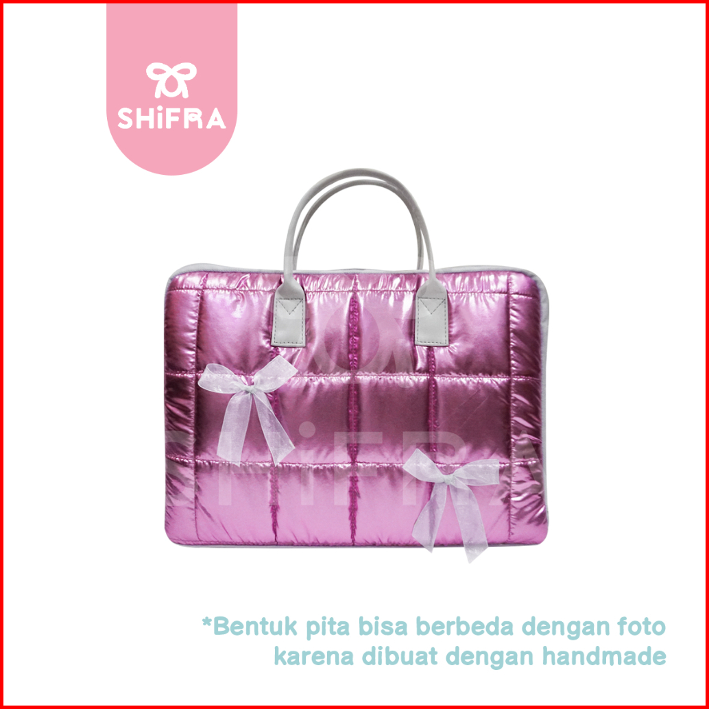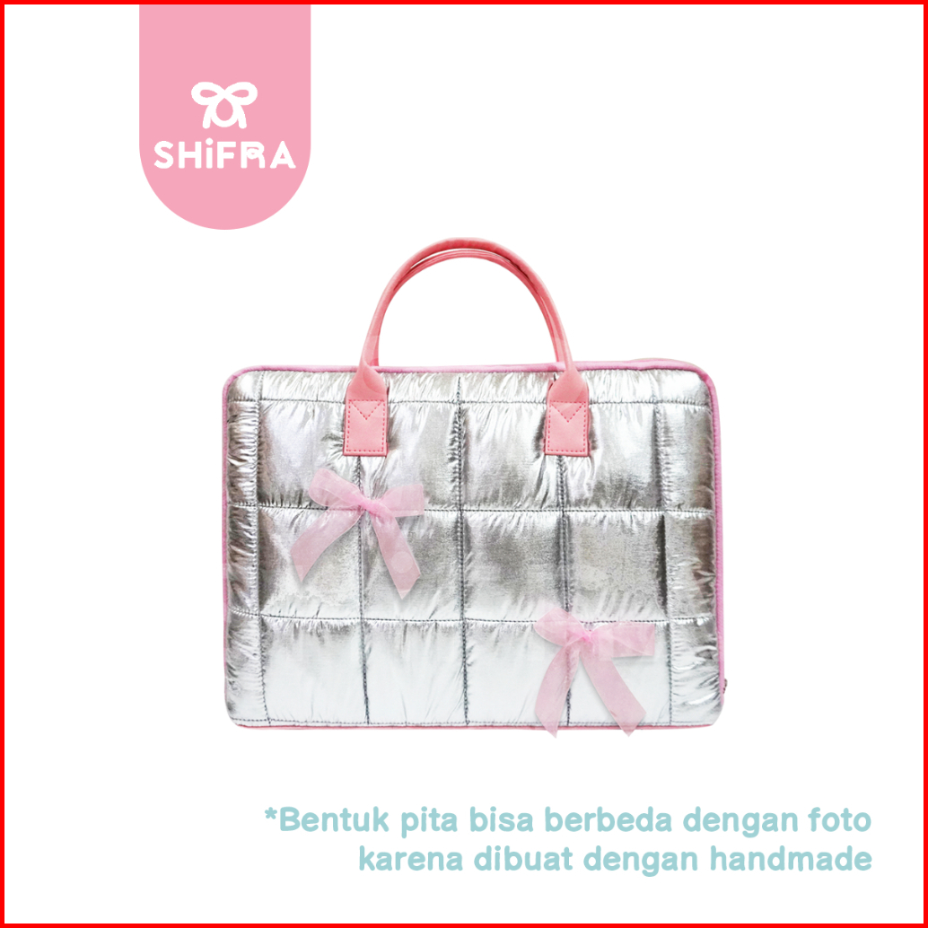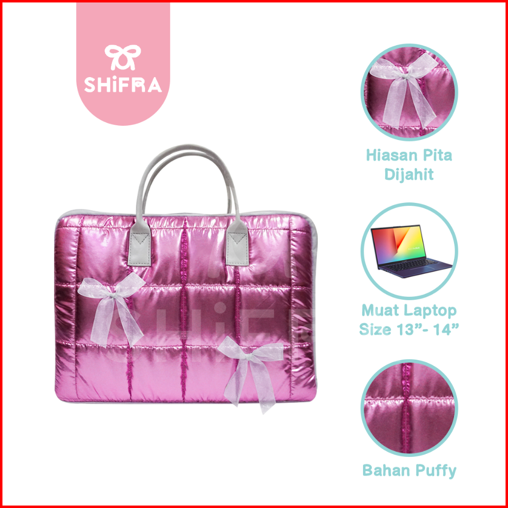 Shifra Tas Laptop Jinjing 14 Inch Puffy Pillow Kotak Metalic Pita Ribbon