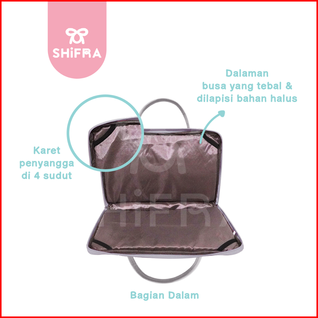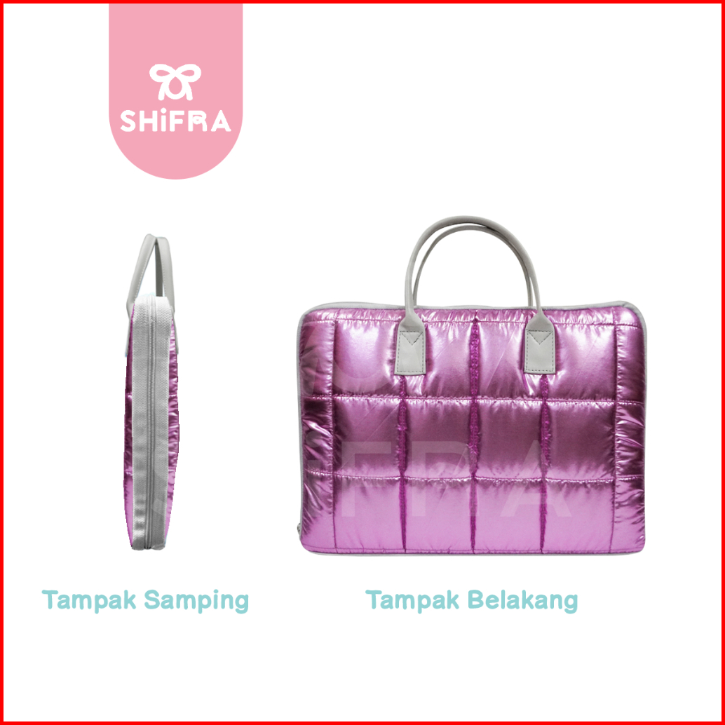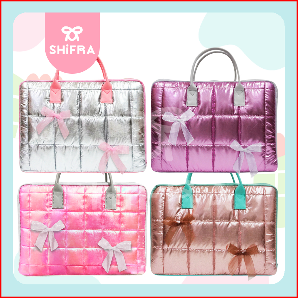 Shifra Tas Laptop Jinjing 14 Inch Puffy Pillow Kotak Metalic Pita Ribbon