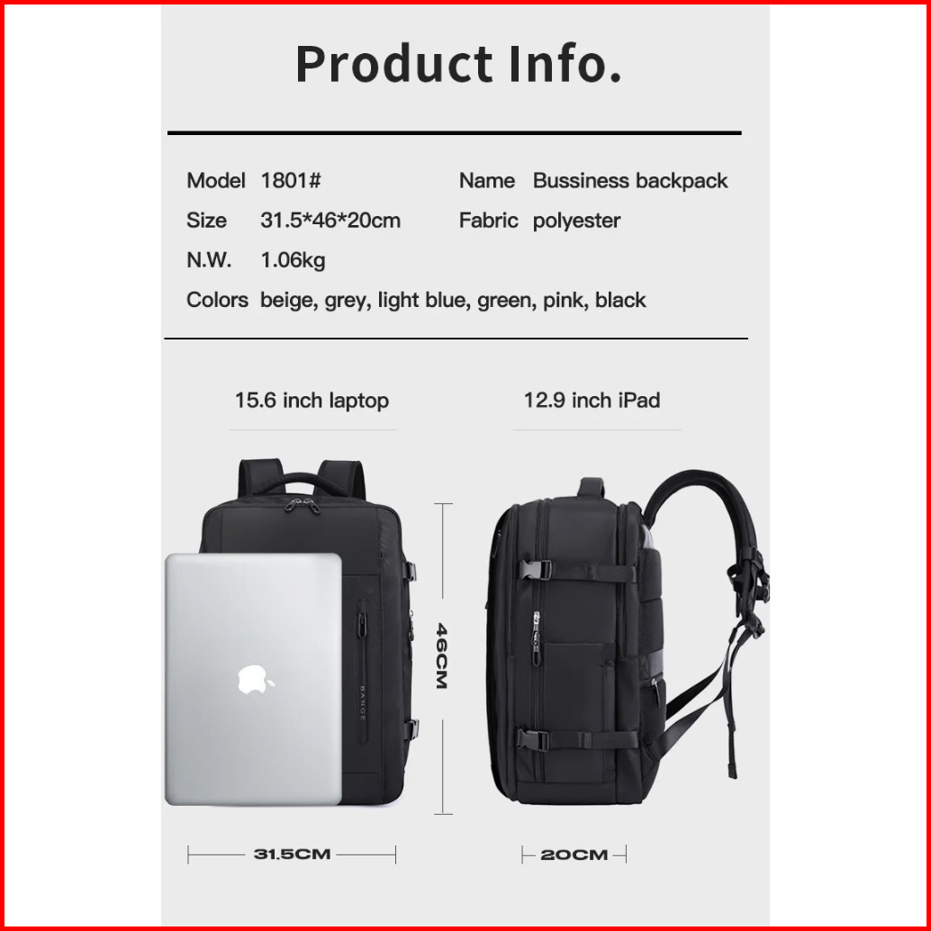 Bange Bg1801 Tas Ransel Laptop Kerja Backpack Travel Pria 15.6 Inch