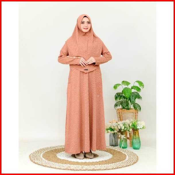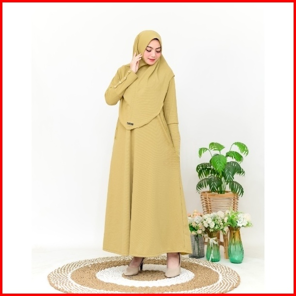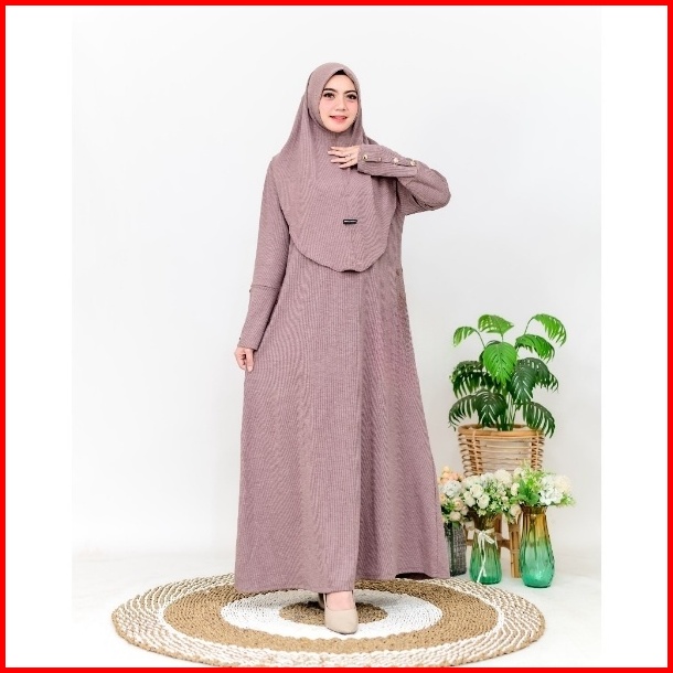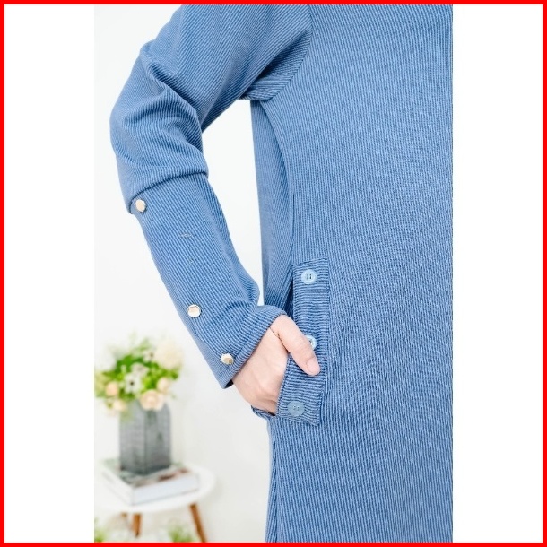 Keyra Dress Batwing Button Knit Premium - Gamis Casual Simpel Panjang Muslim Sporty Busui