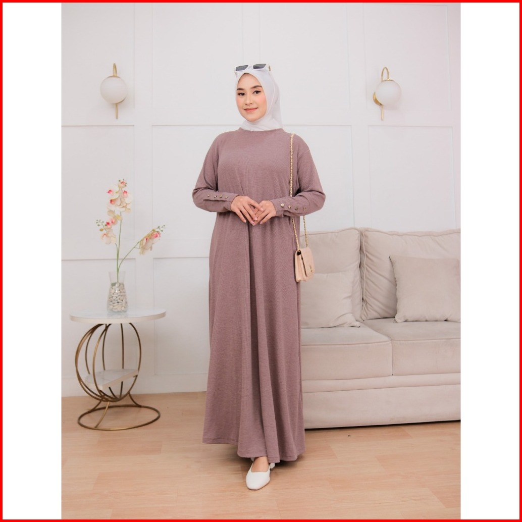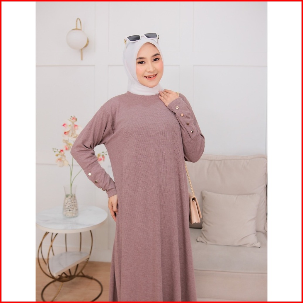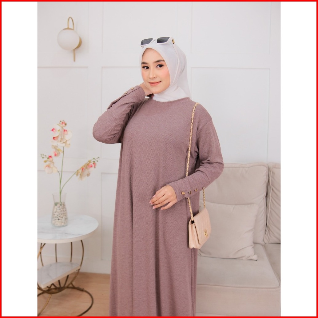 Gamis Inara Batwing Button Knit Premium Kekinian