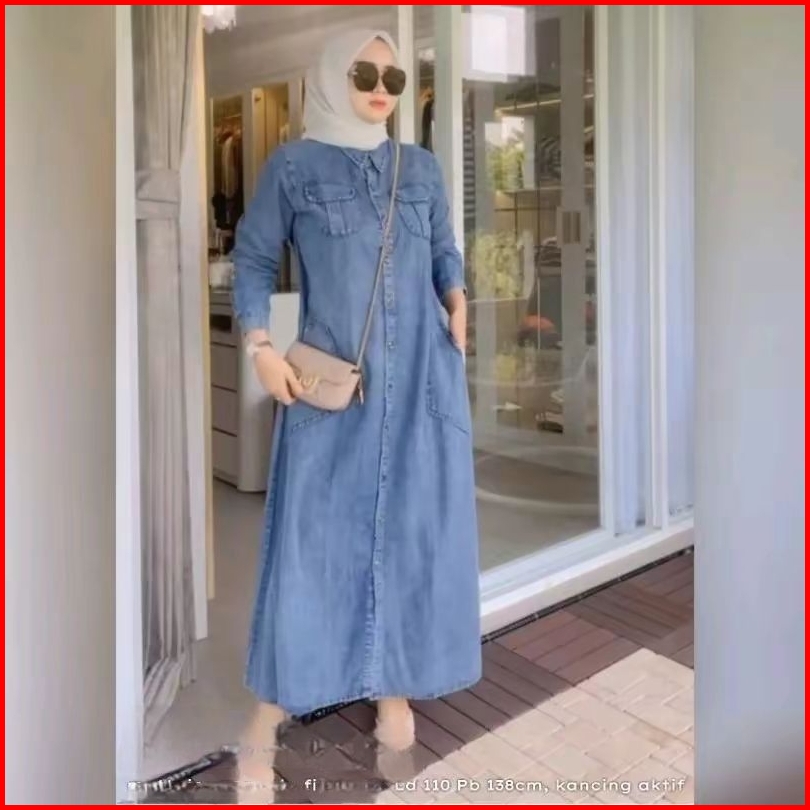 Gamis Jeans Kekinian 2024 Gamis Denim Wanita Menyusui