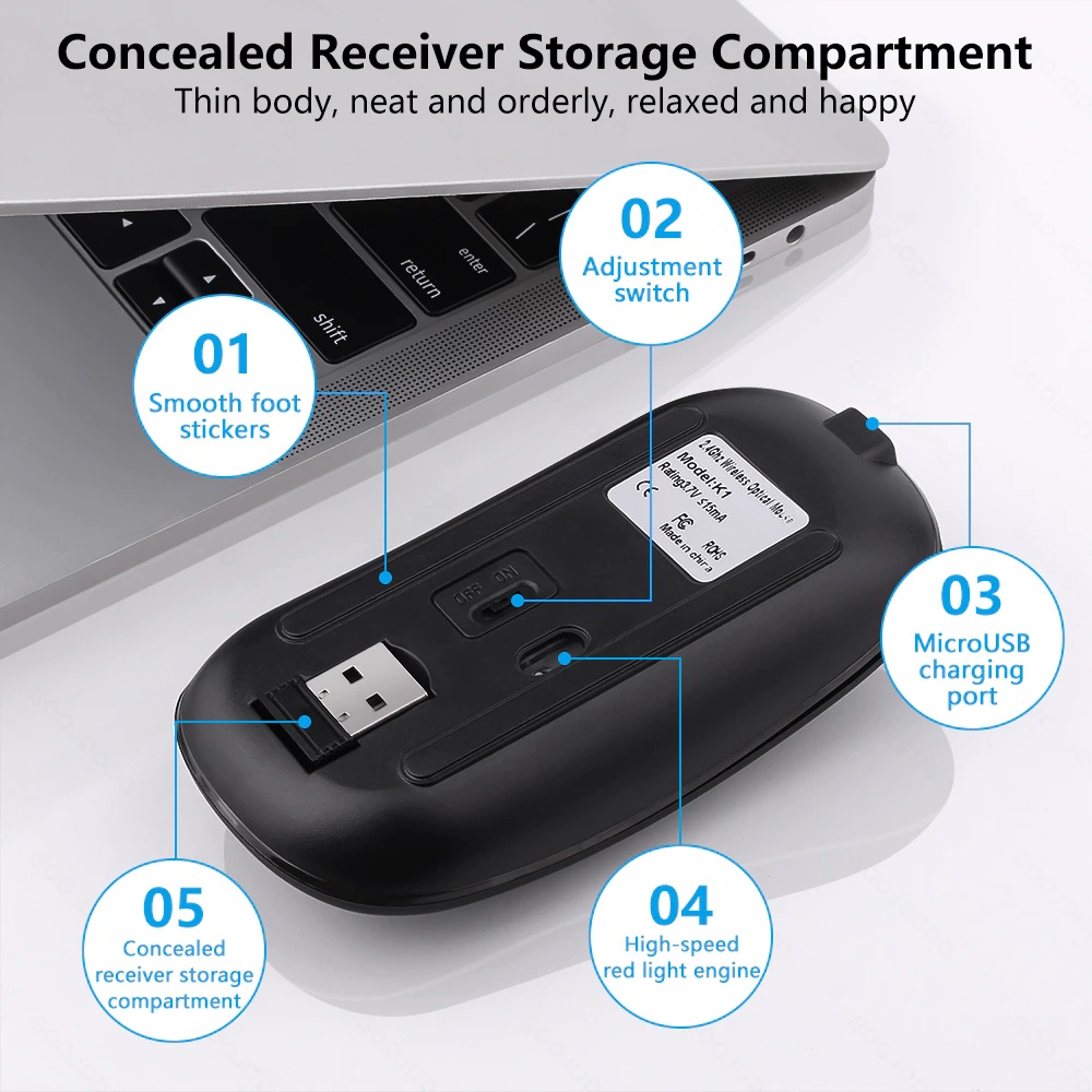 (FLASH SALE) Mouse Bluetooth Rechargeable Wireless Mouse Ultra-thin Silent LED Colorful Backlit Gaming Mouse