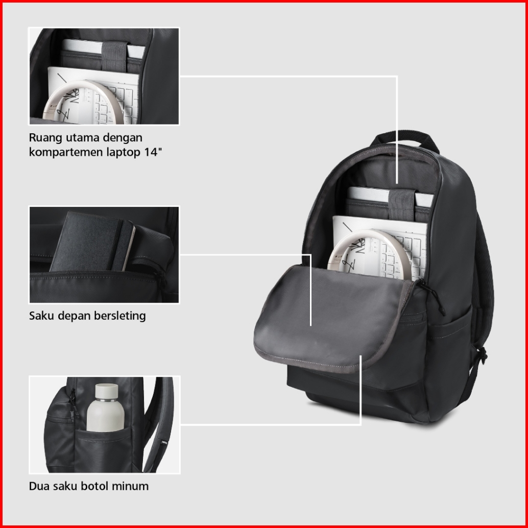 Bodypack Paris 2.0 Laptop Backpack 14 Inch Tas Ransel Kerja Kuliah Sekolah Classic 19 L