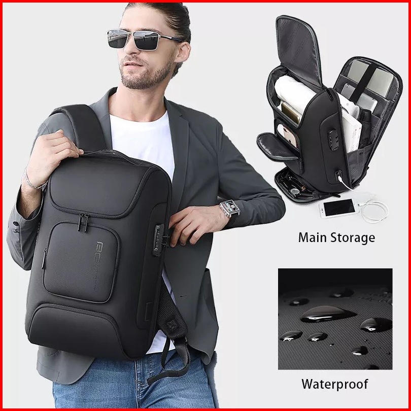 Bg7216 Plus Tas Bange Pria Cowok Kampus Kerja Ransel Laptop 15.6 Ipad 12.9 Tsa Usb Bg7216