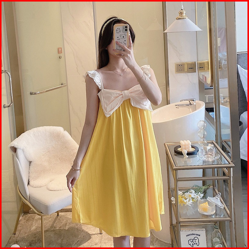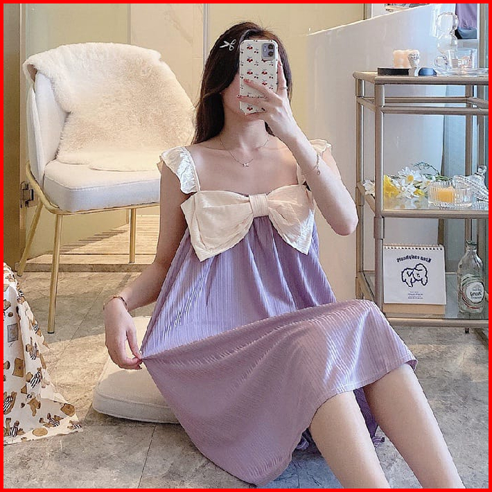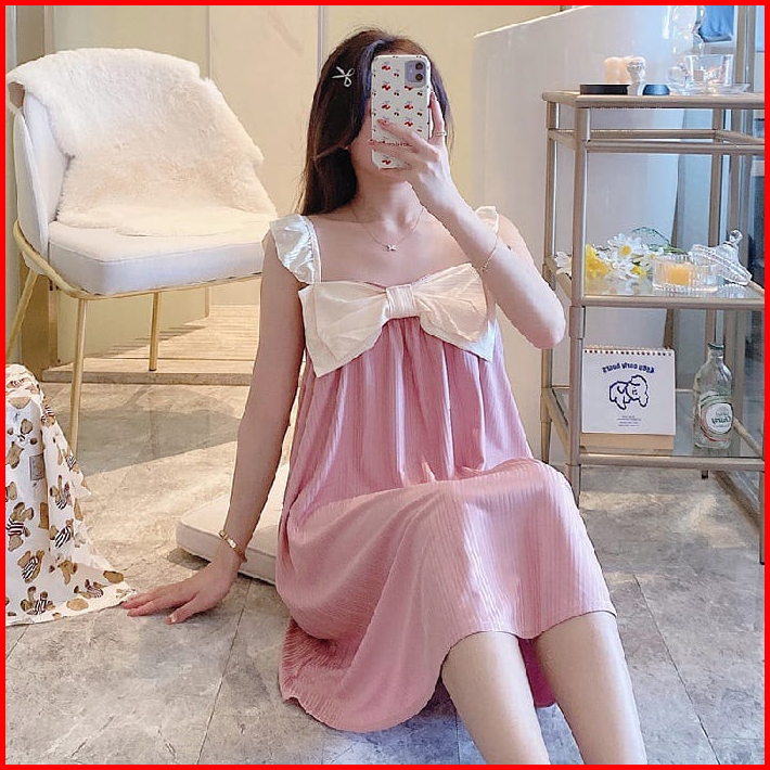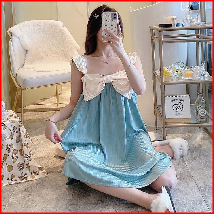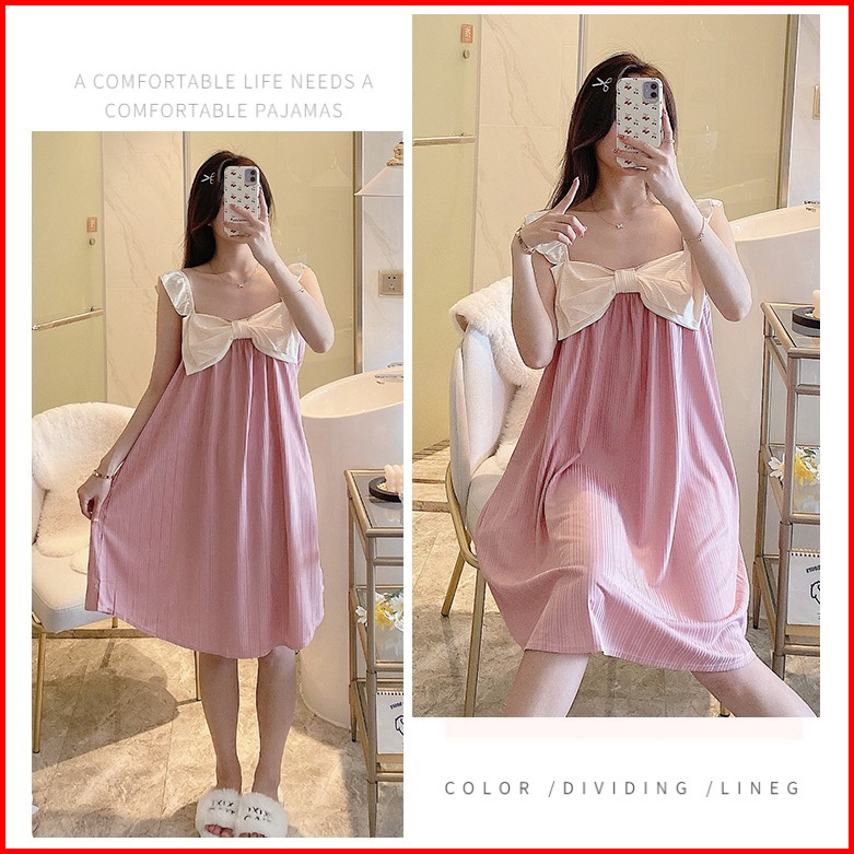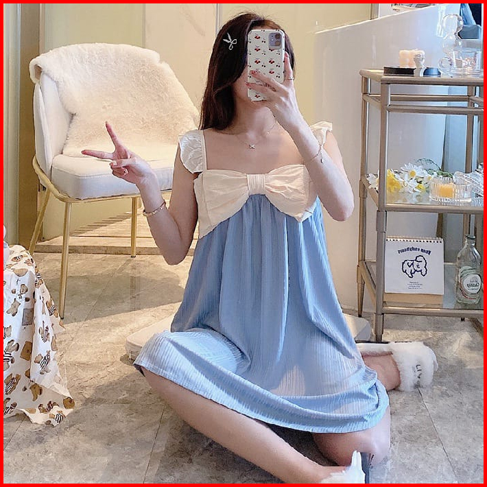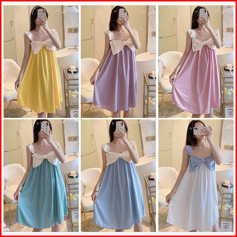 Baju Tidur Daster Model Tanktop Pita Besar Style Korea Size M- Xxl Fit To 85 Kg Bahan Spandek Lembut