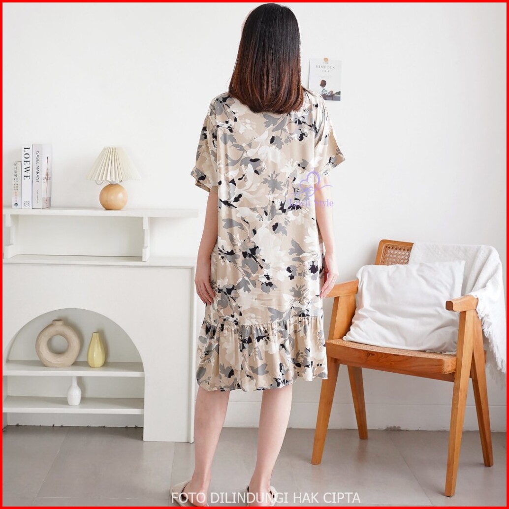 Daster Kekinian Terbaru Rayon Premium Cream Bunga