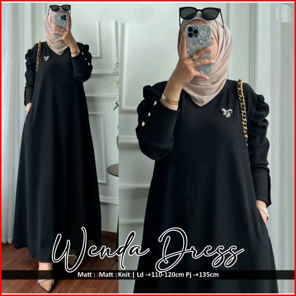 Wenda Gamis Rib Knit Batwing Kancing Gaun Gamis Dres Atasan Jumbo Besar Panjang Maxi Maja Style Gamis Muslimah Lebaran O