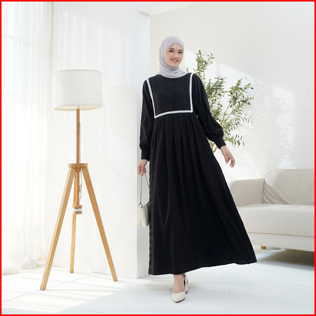 Gamis Crinkle Wanita Polos Basic Gamis Busui Friendly Ironless Adem Elegan Simple