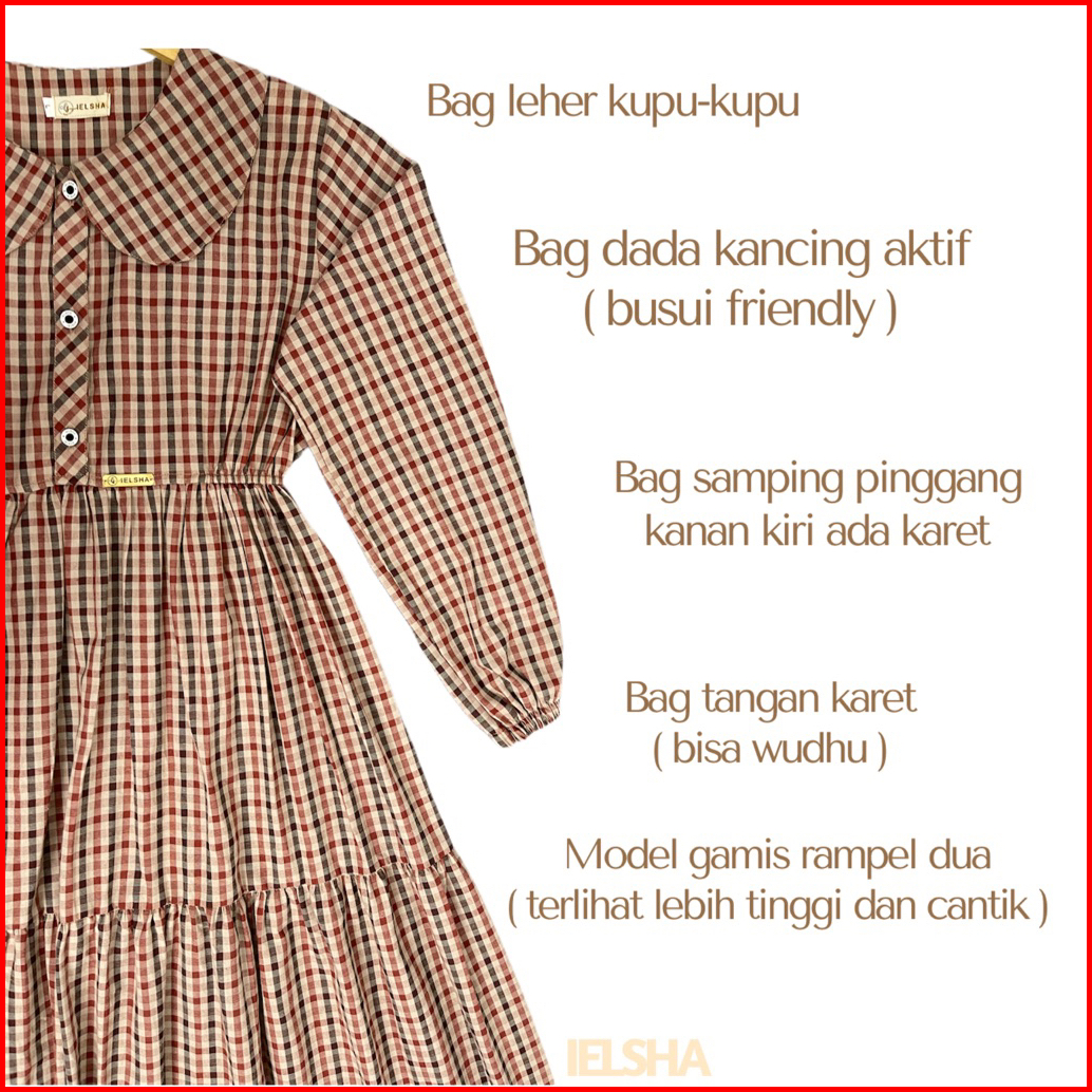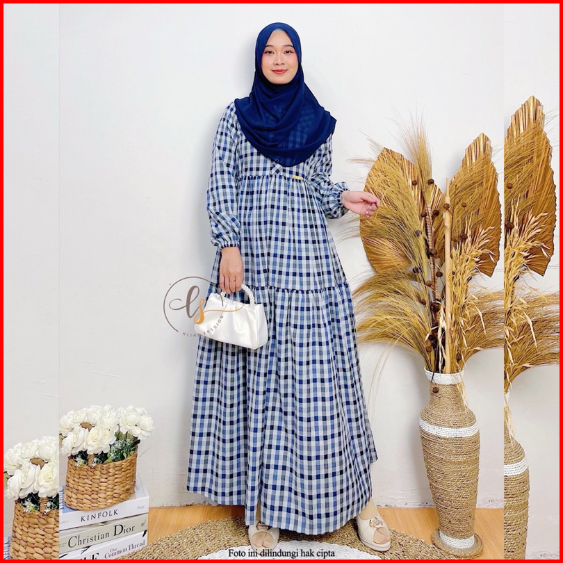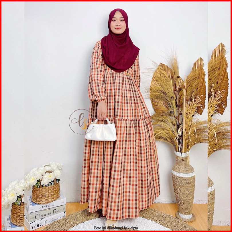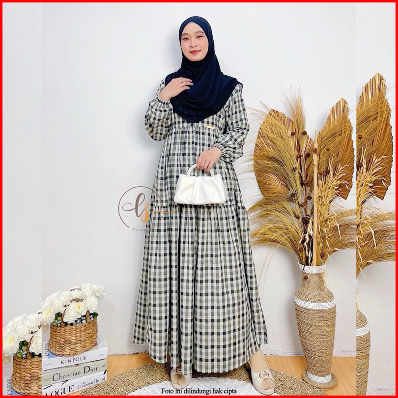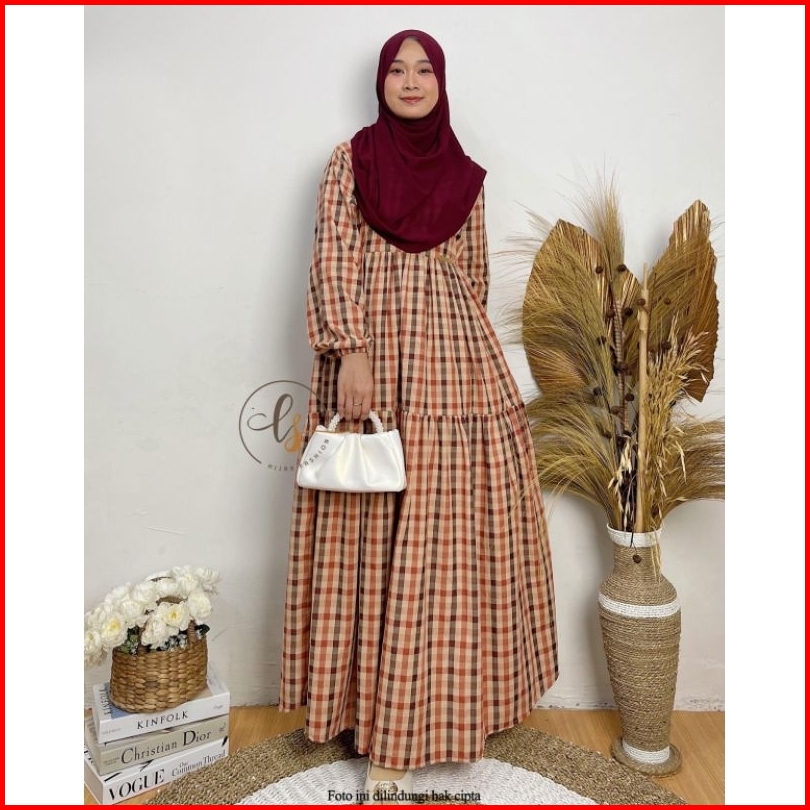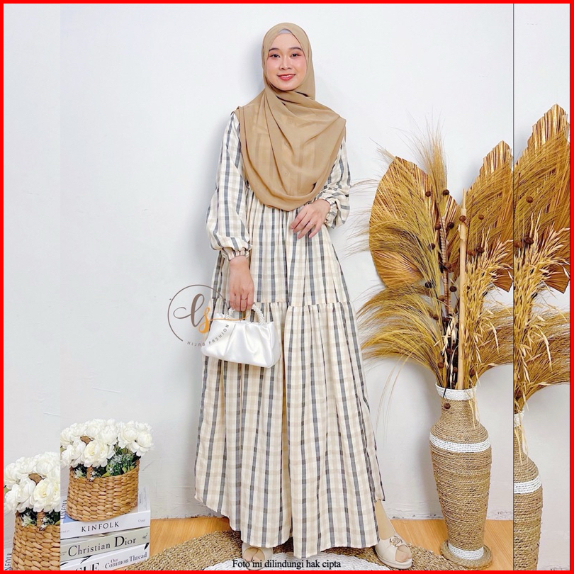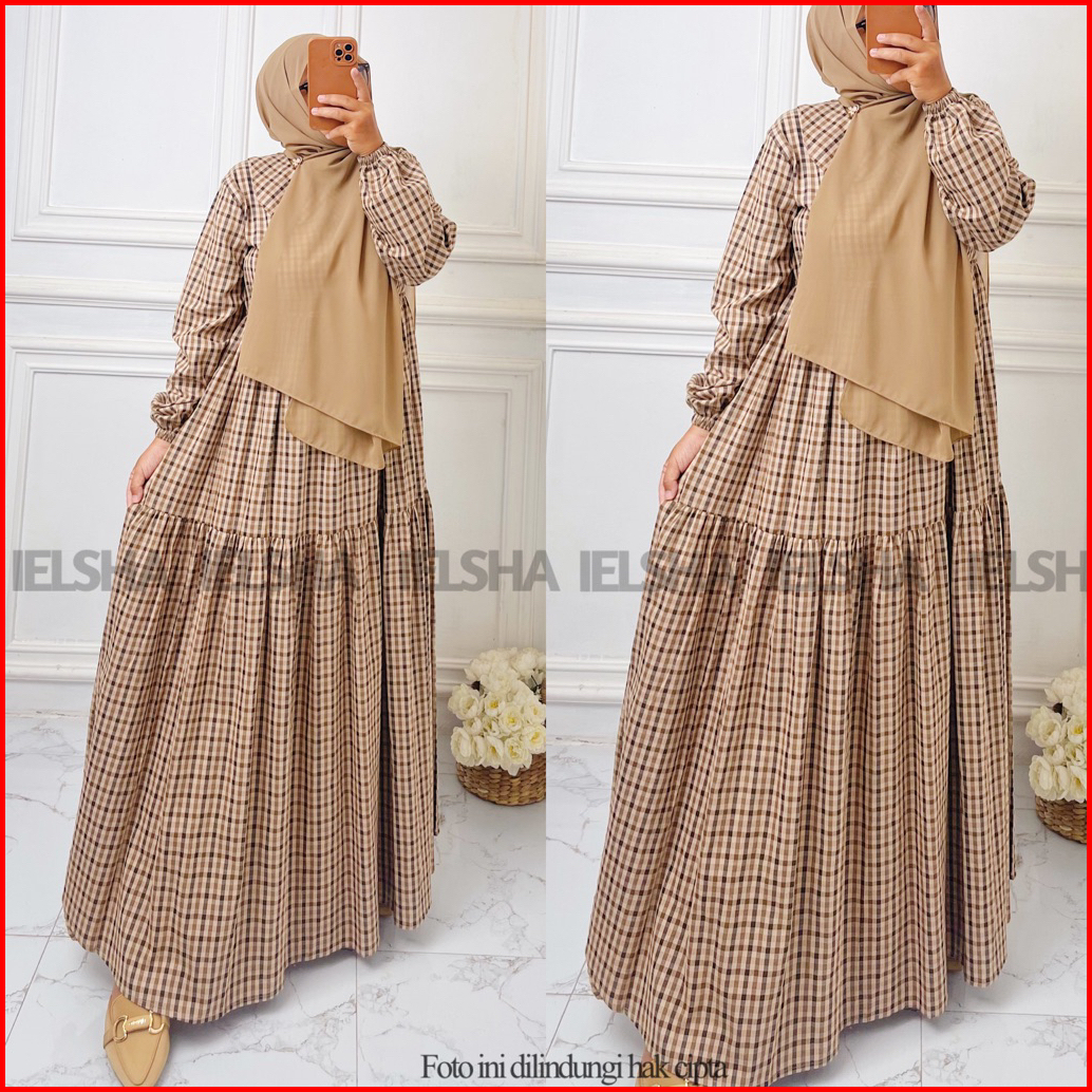 Melisa Dress Gamis Termurah Terbaru Modern Kekinian Kotak Kotak Elegan Kasual