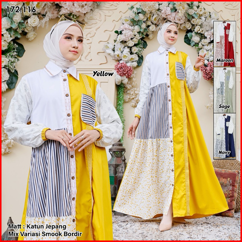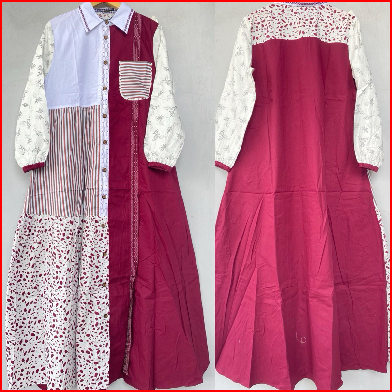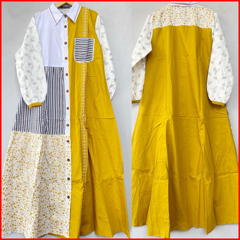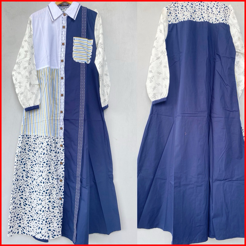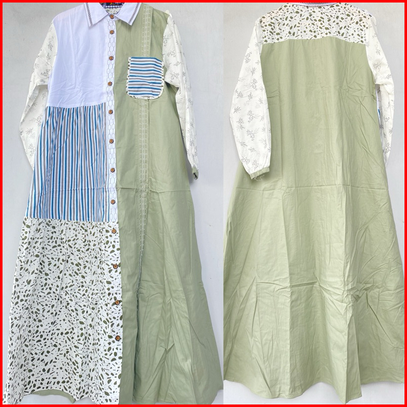 Gamis Kalia Full Katun Jepang Kombinasi Motif Gihaza Best Ozea