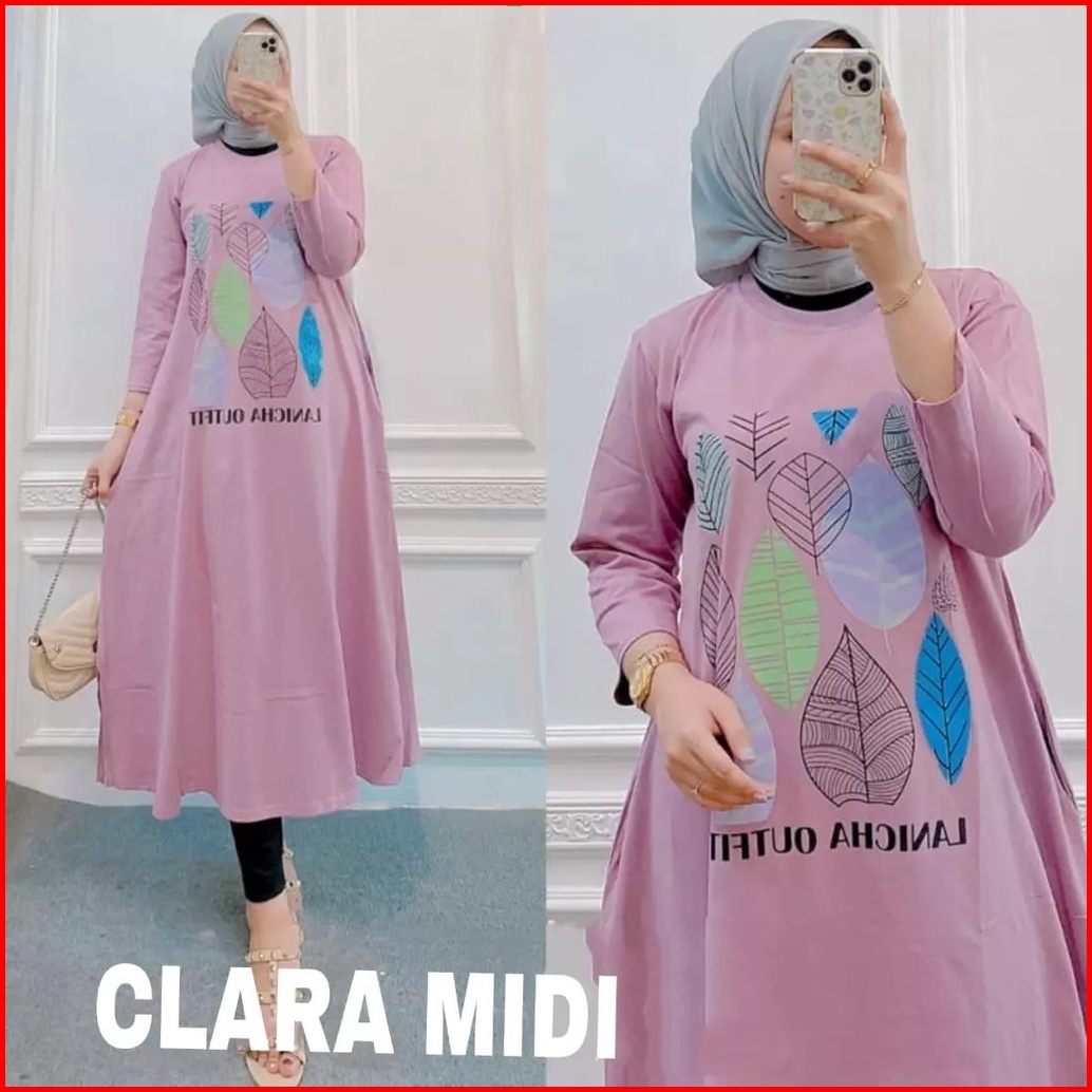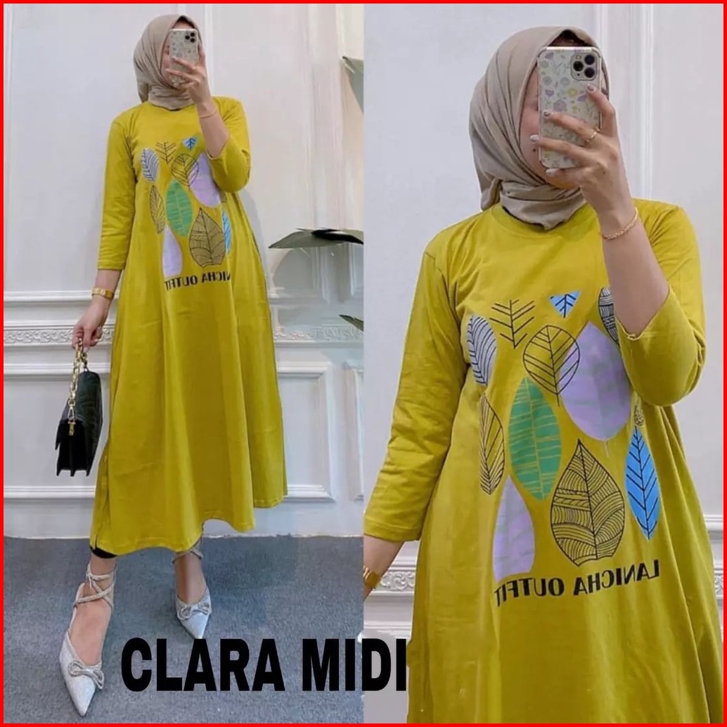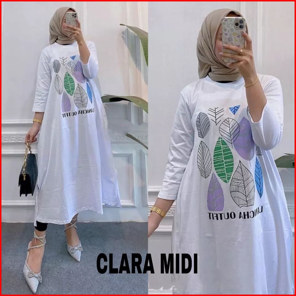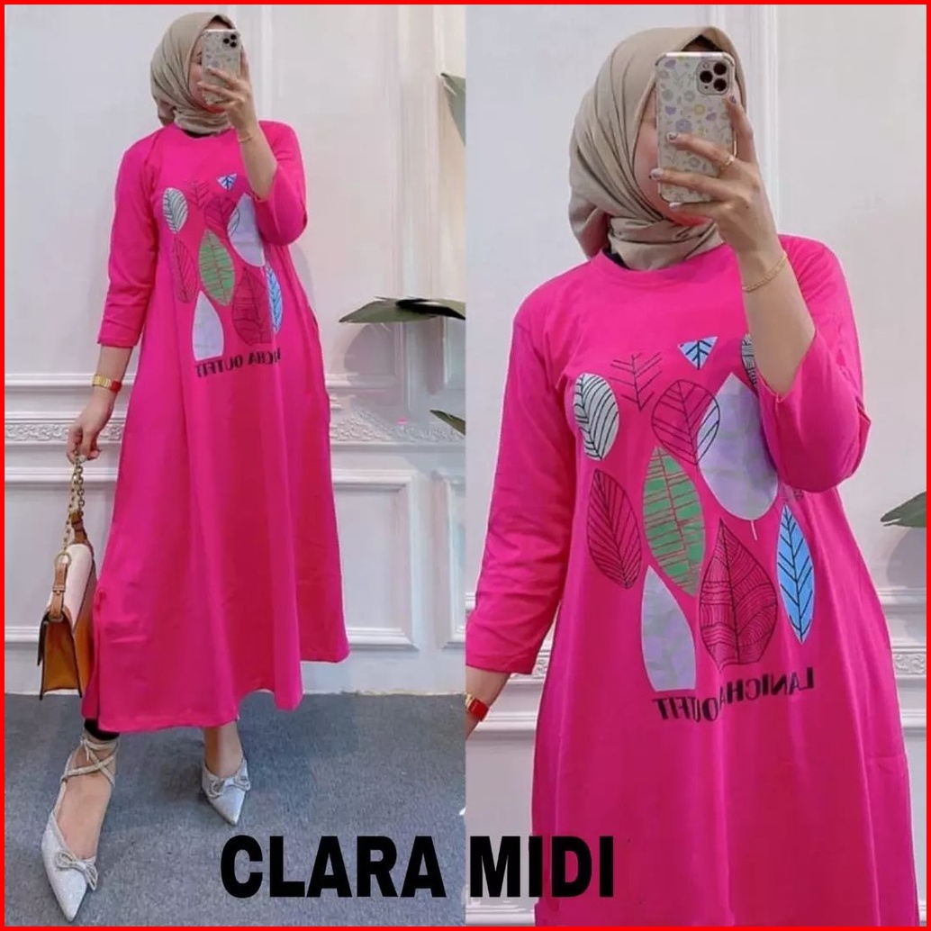 Gamis Terbaru Clara Midi Dress Kf Midi Dress Muslim Bahan Kaos Katun Combed 24s Aplikasi Sablon Ukuran M L Xl Xxl Midi C