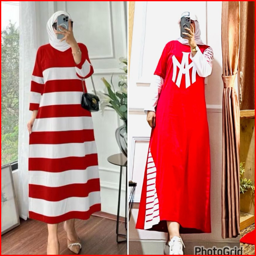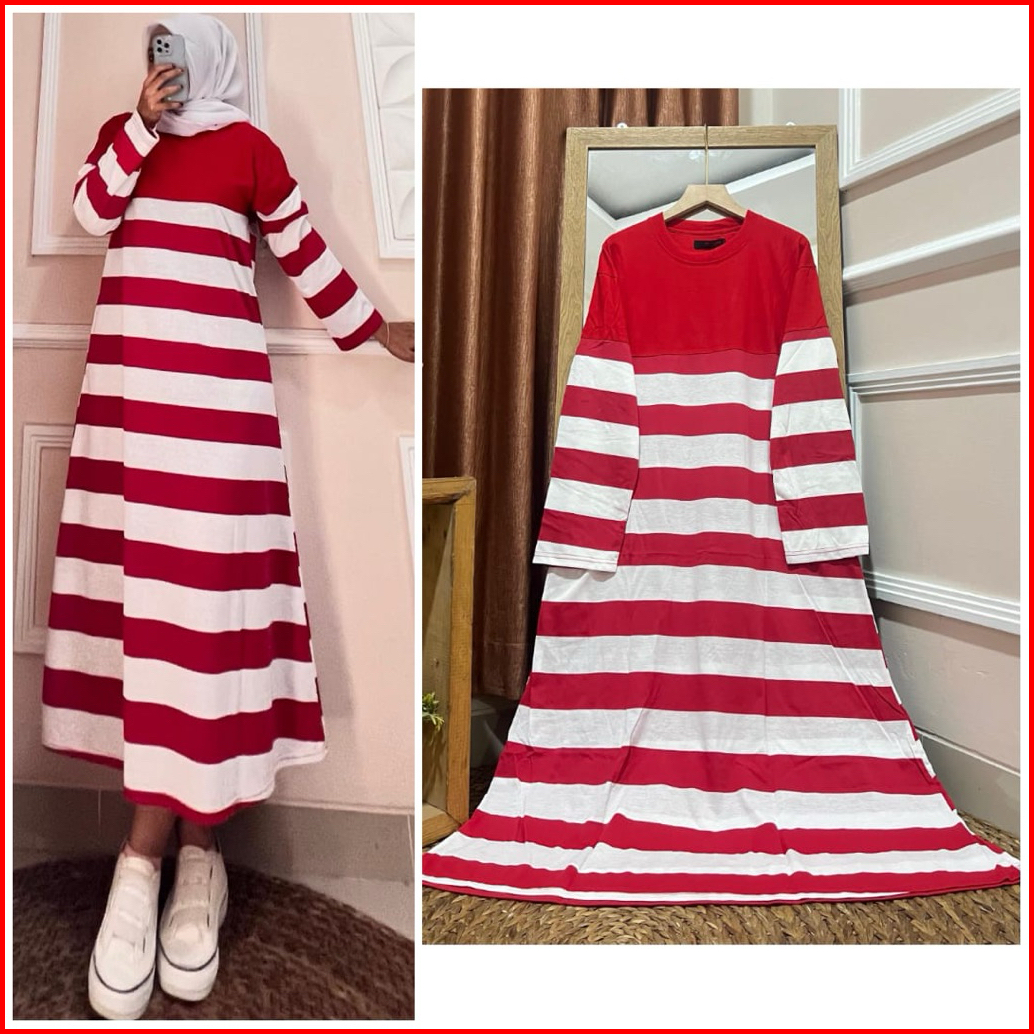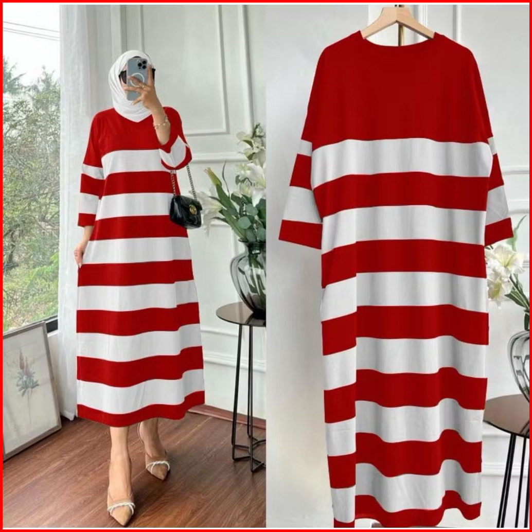 Dress Salur Merah Putih Combat Premium Midi Dress Kemerdekaan Agustusan Kekinian