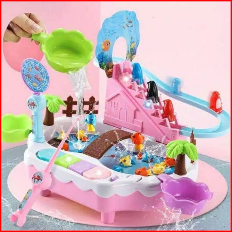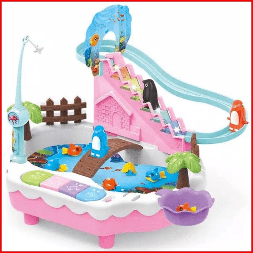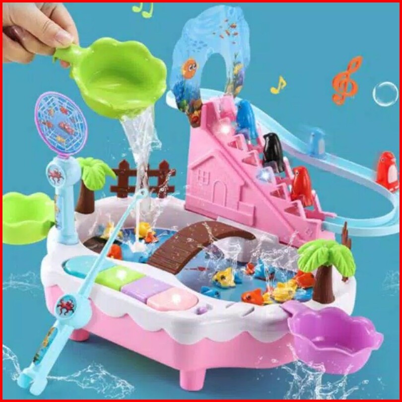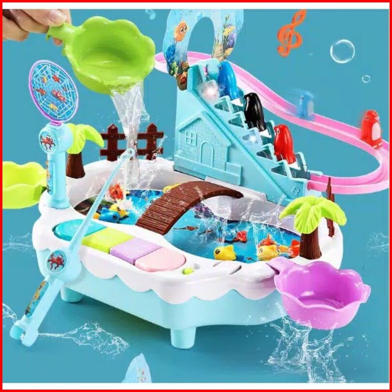 Amora Mainan Pancingan 3 In 1 Pancingan Ikan Magnet Seluncuran Penguin Mini Piano Model Terbaru