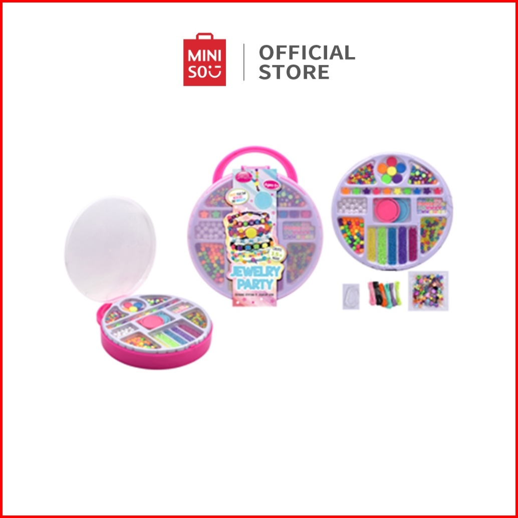 Miniso Mainan Anak-anak Set Kotak Bundar Portabel Manik-manik Diy