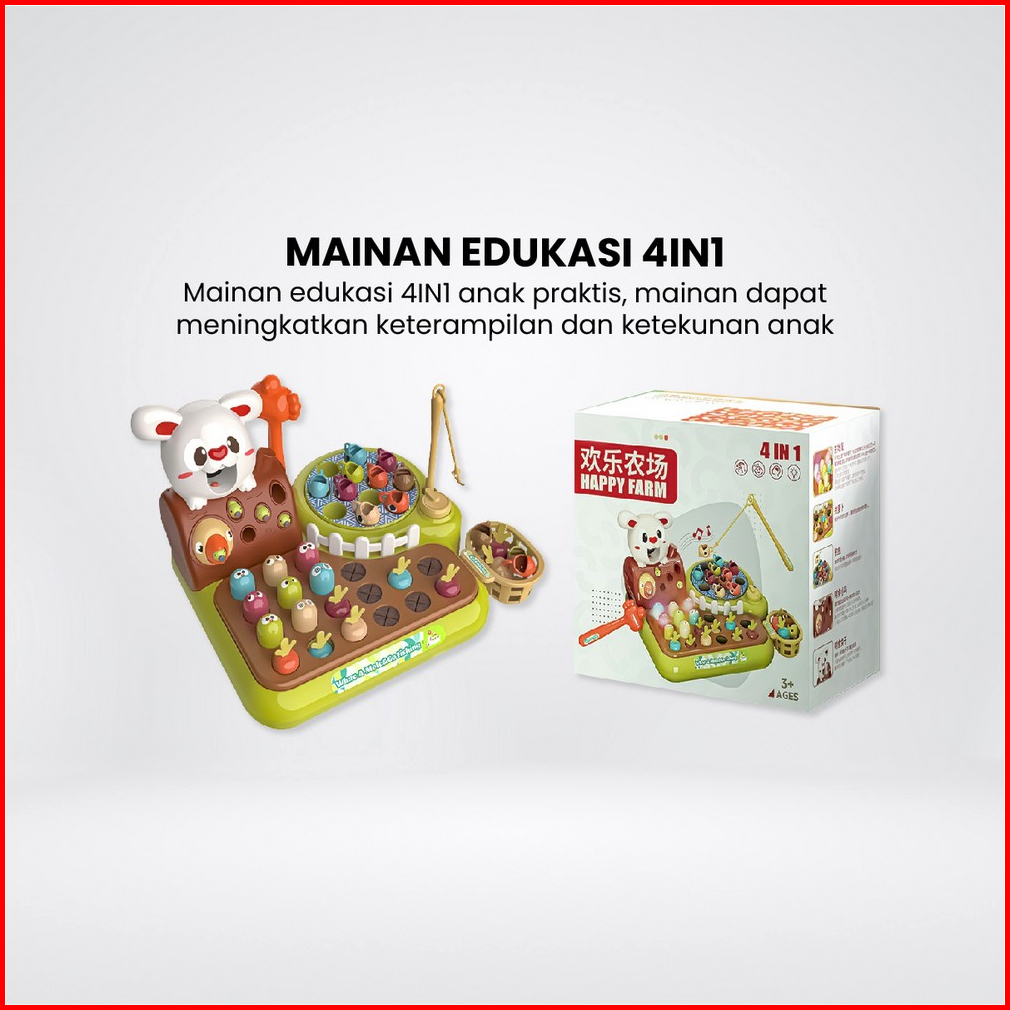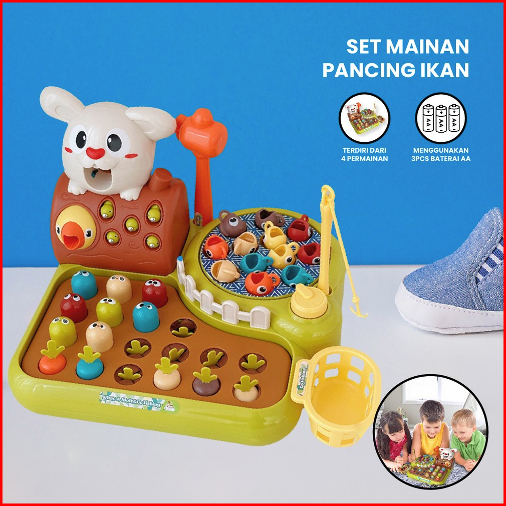 Mainan Edukasi 4in1 Rabbit Farming Game Whack A Mole Mainan Montessori Anak Set Mainan Pancing Ikan Fishing Kids Game Im