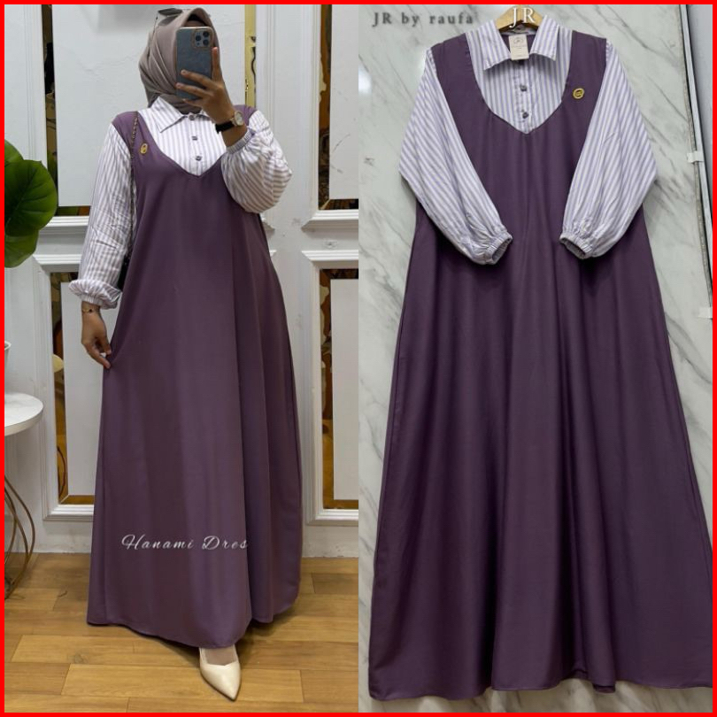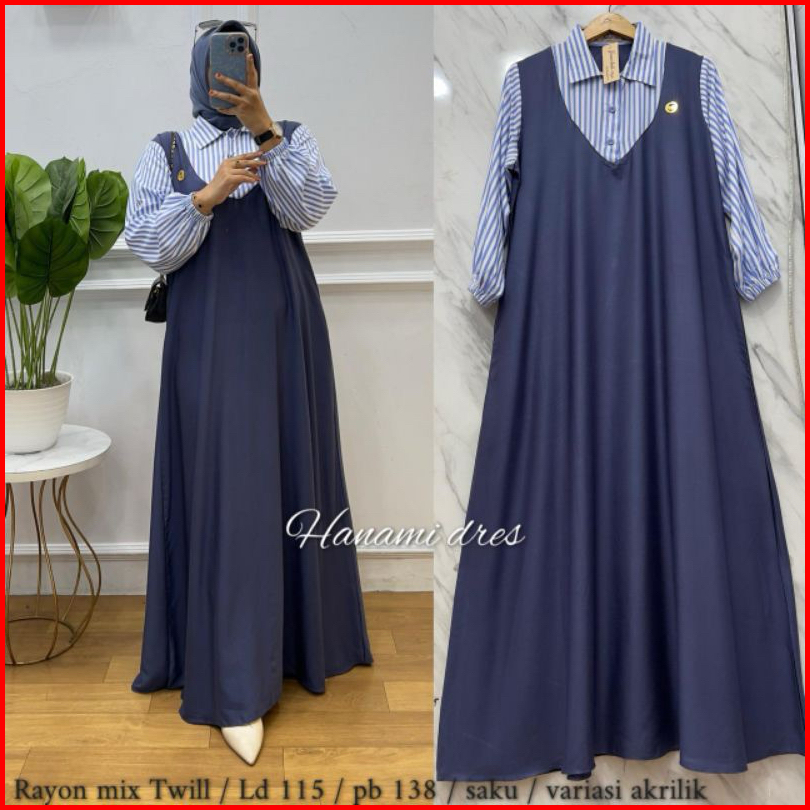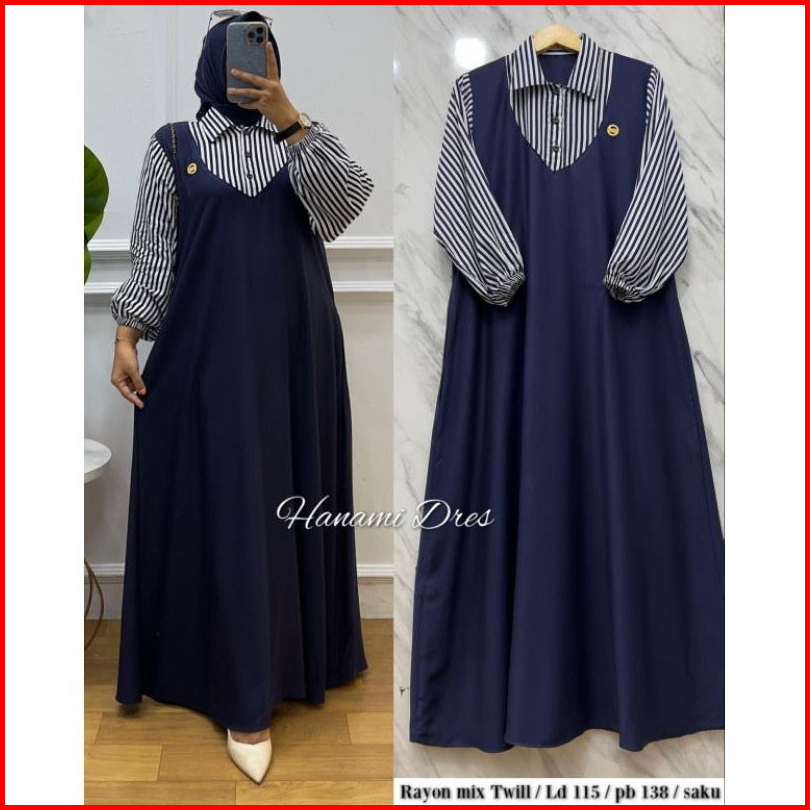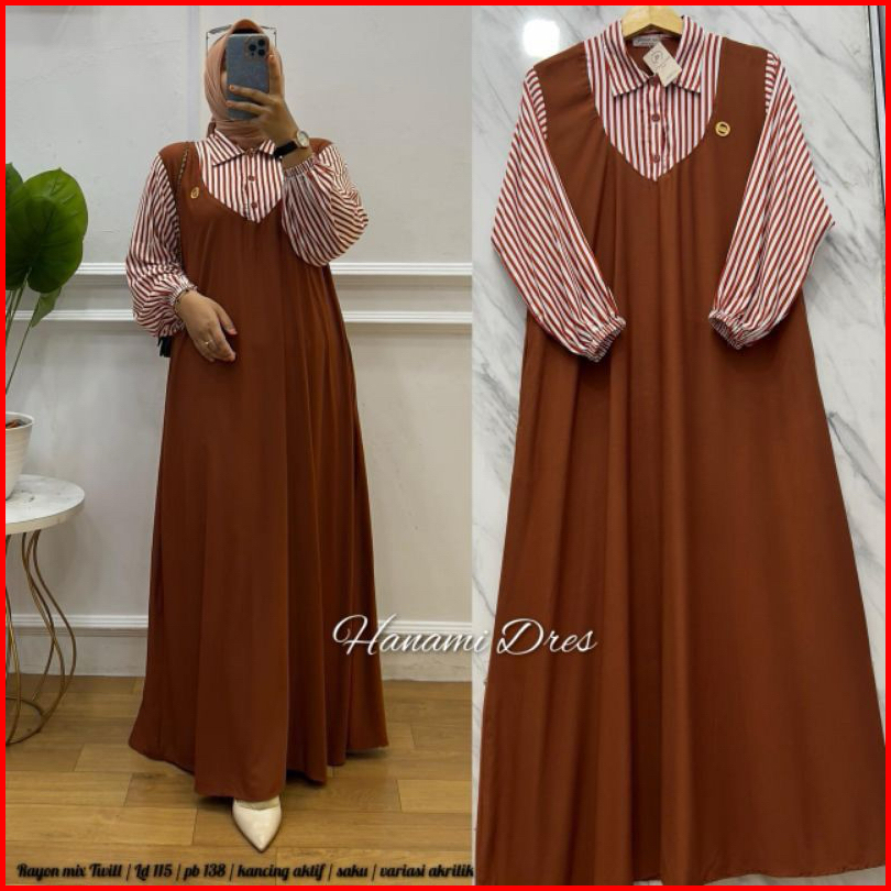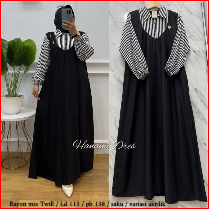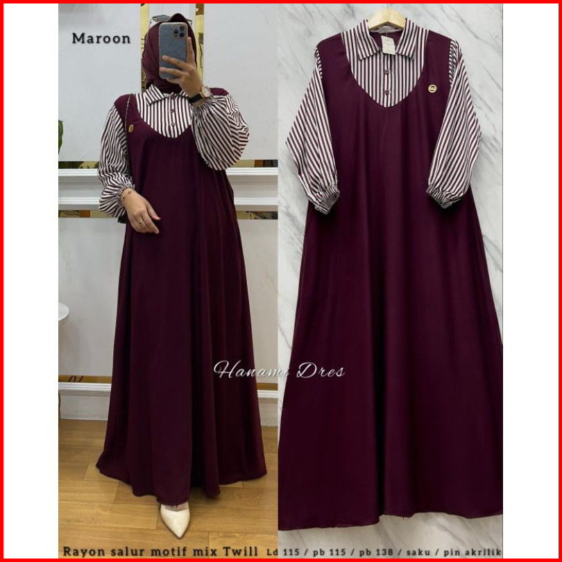 Hanami Dress Rayon Twil Mix Salur Busui Friendly Gamis Wanita Kekinian Gamis Lebaran Terbaru Dress Viral Murah