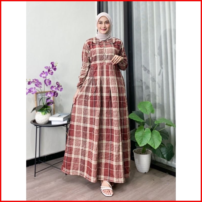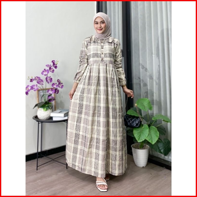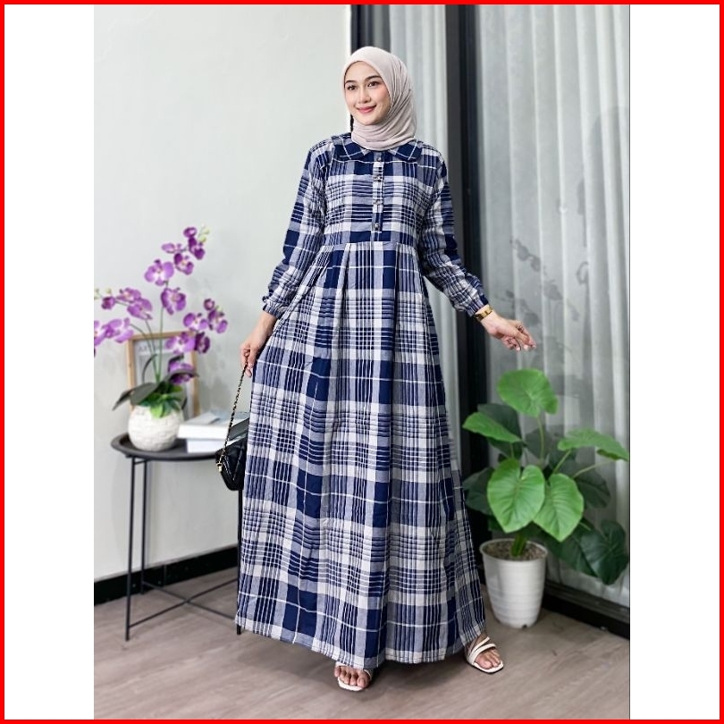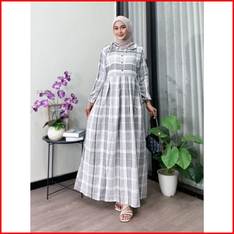 Emona Dress - Gamis Kekinian Dress Katun Haruka Motif Kotak By Zeva