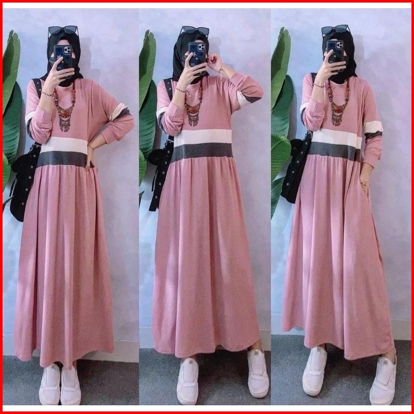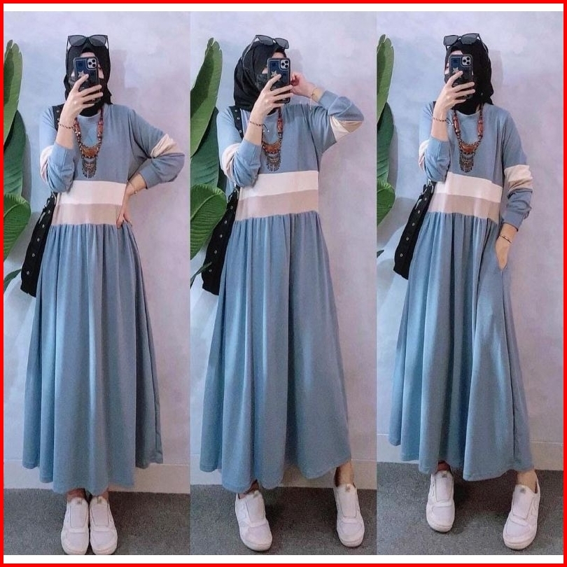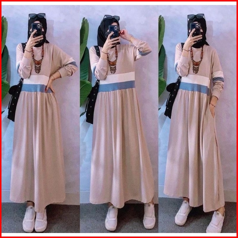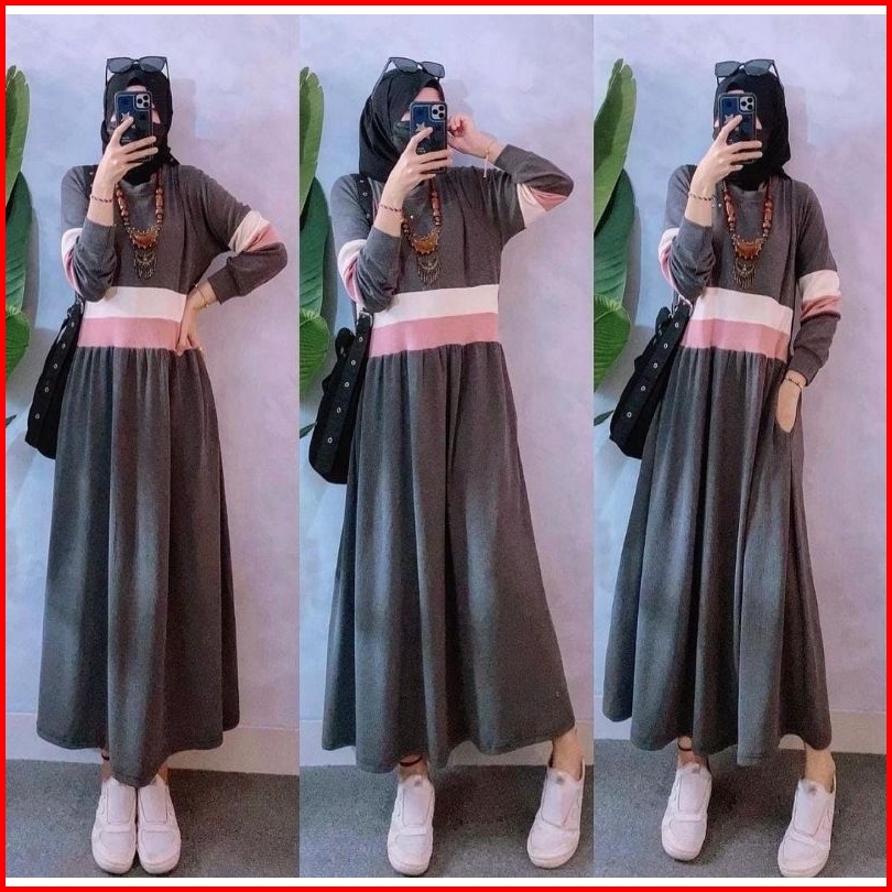 Sheila Dress Bahan Full Knit Yang Lembut - Saku Kanan Kiri Aktif- Pola Dress A Line Cocok Untuk Badan Gemuk Maupun Kurus