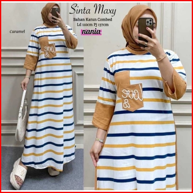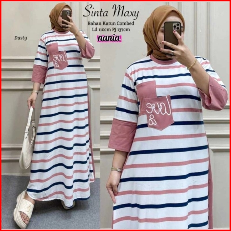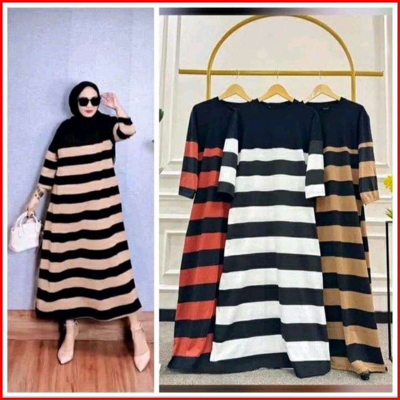 Gamis Dress Salur Kekinian Wanita Kaos Gamis Kaos Salur Wanita Terbaru Dress Salur Stripe Kaos Combed Premium