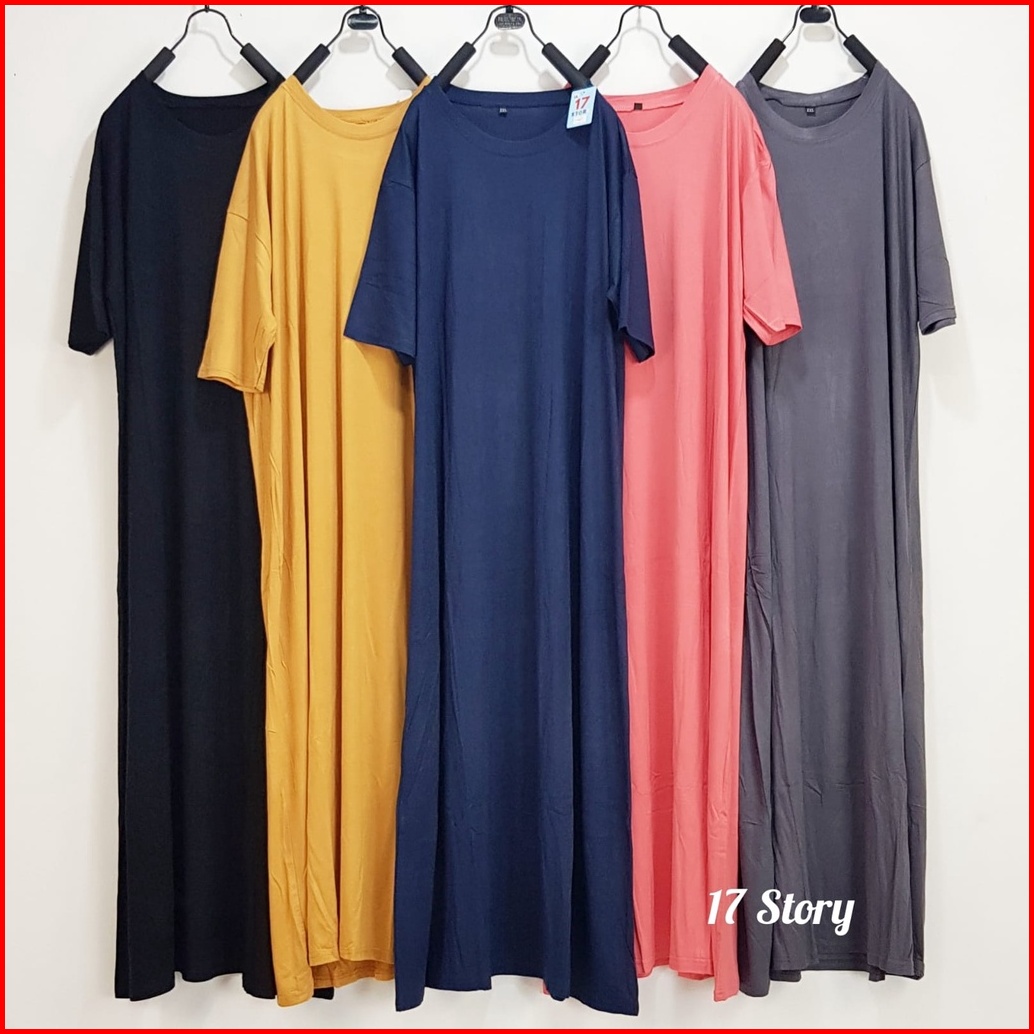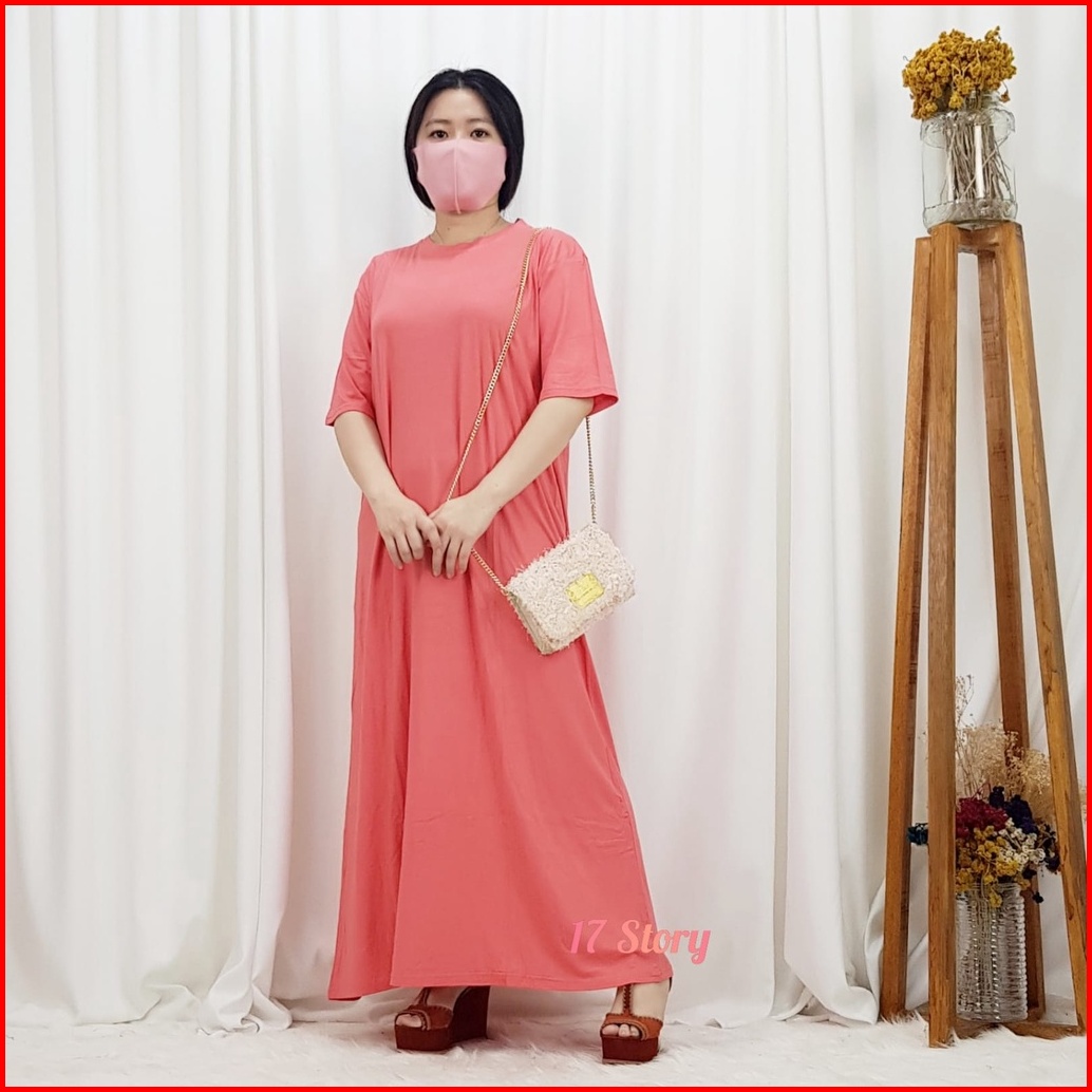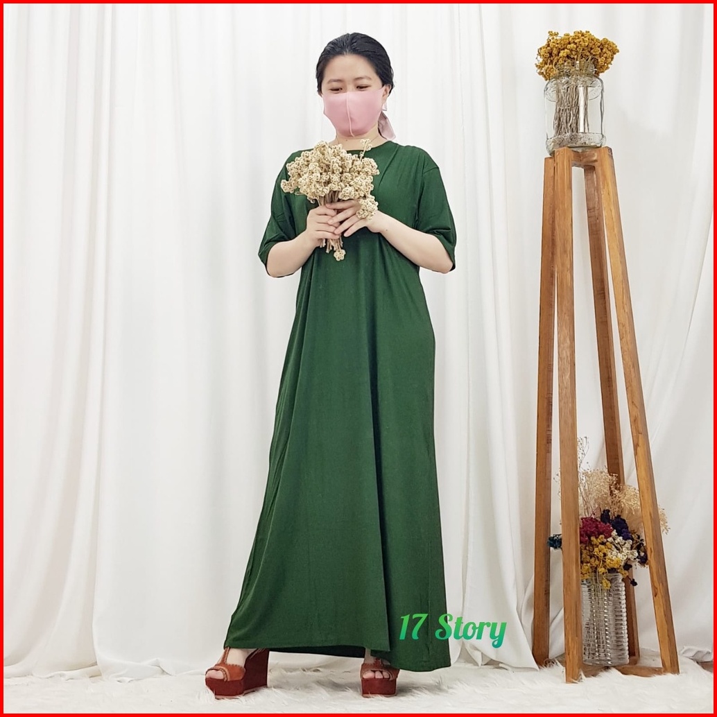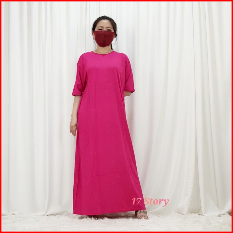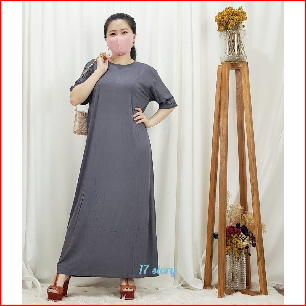 Maxi Dress Wanita Polos Bahan Kaos Rayon Premium Import Size Jumbo Ld 100 Cm Sampai 150 Cm