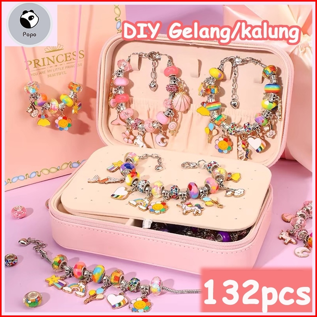 Popo 132pcs Diy Gelang Set Manik Manik Diy Kalung Gelang Bracelet Hadiah Gelang Pembuat Kit Anak Hadiah Mainan Perempuan
