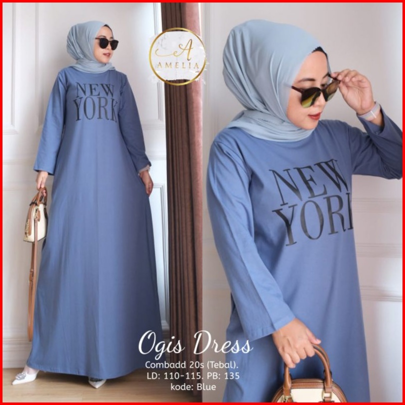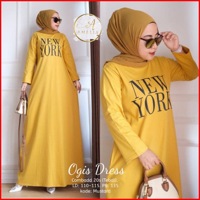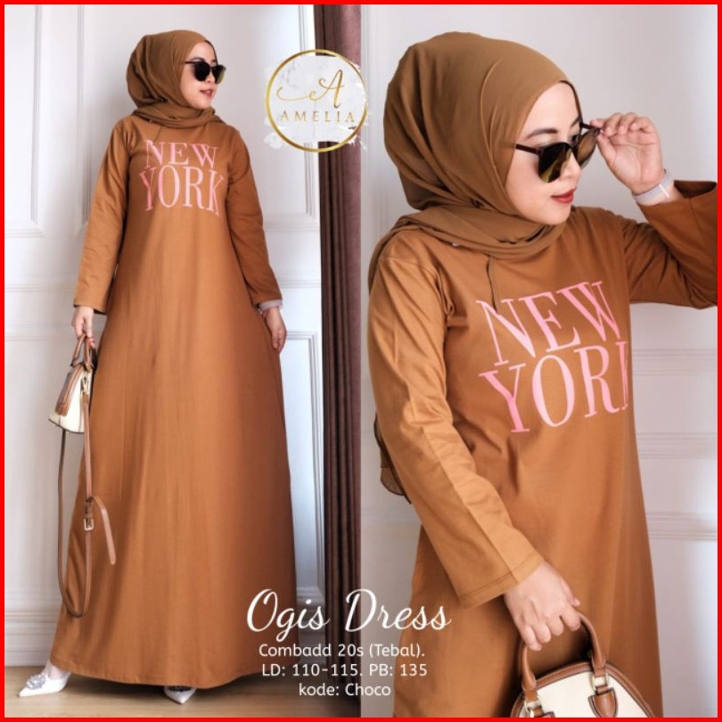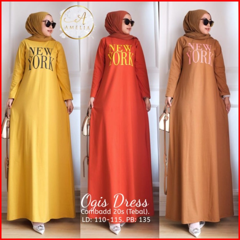 Gamis Dress Muslim Sablon New York Terbaru Best Seller.ogis Dress Combad 20 S Tebal Ld 105-115