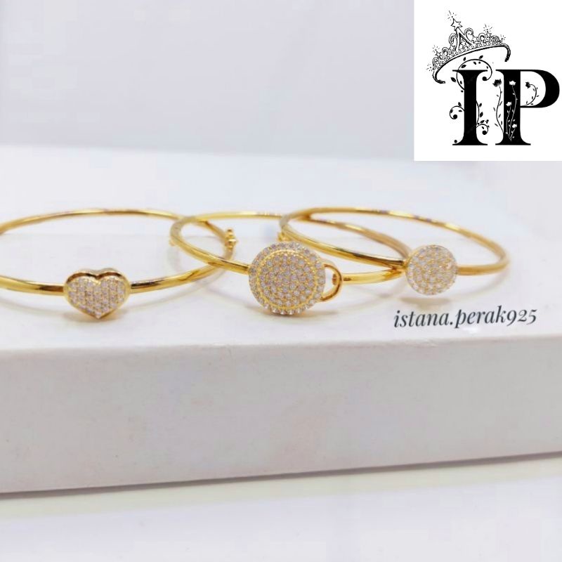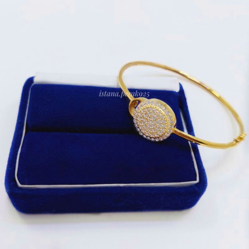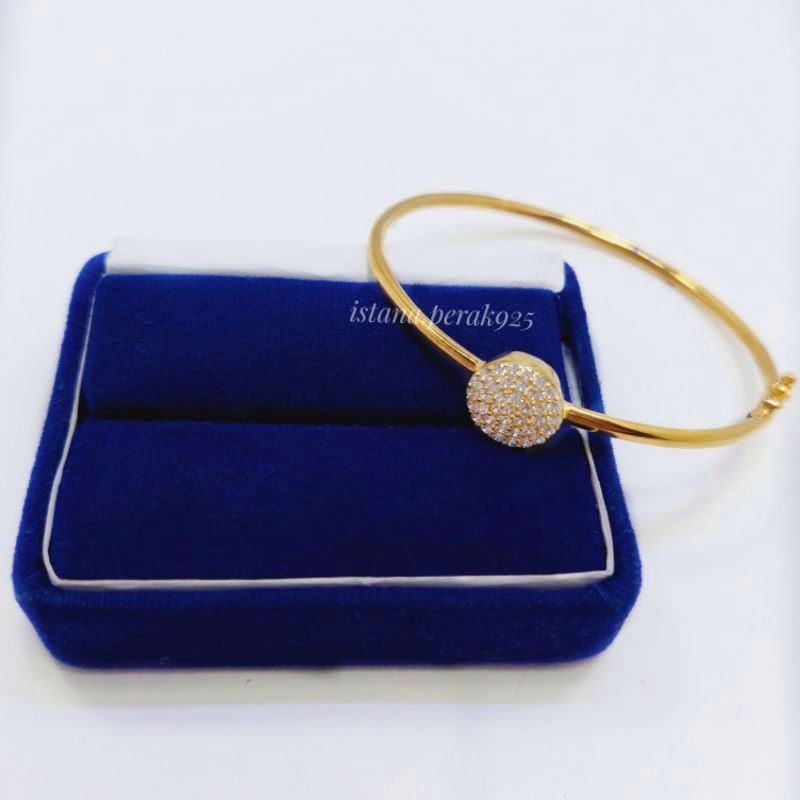 Gelang Perak Asli Silver 925 Lapis Ems Model Bangle bulat - Perhiasan Perak Wanita - perhiasan asli ada surat