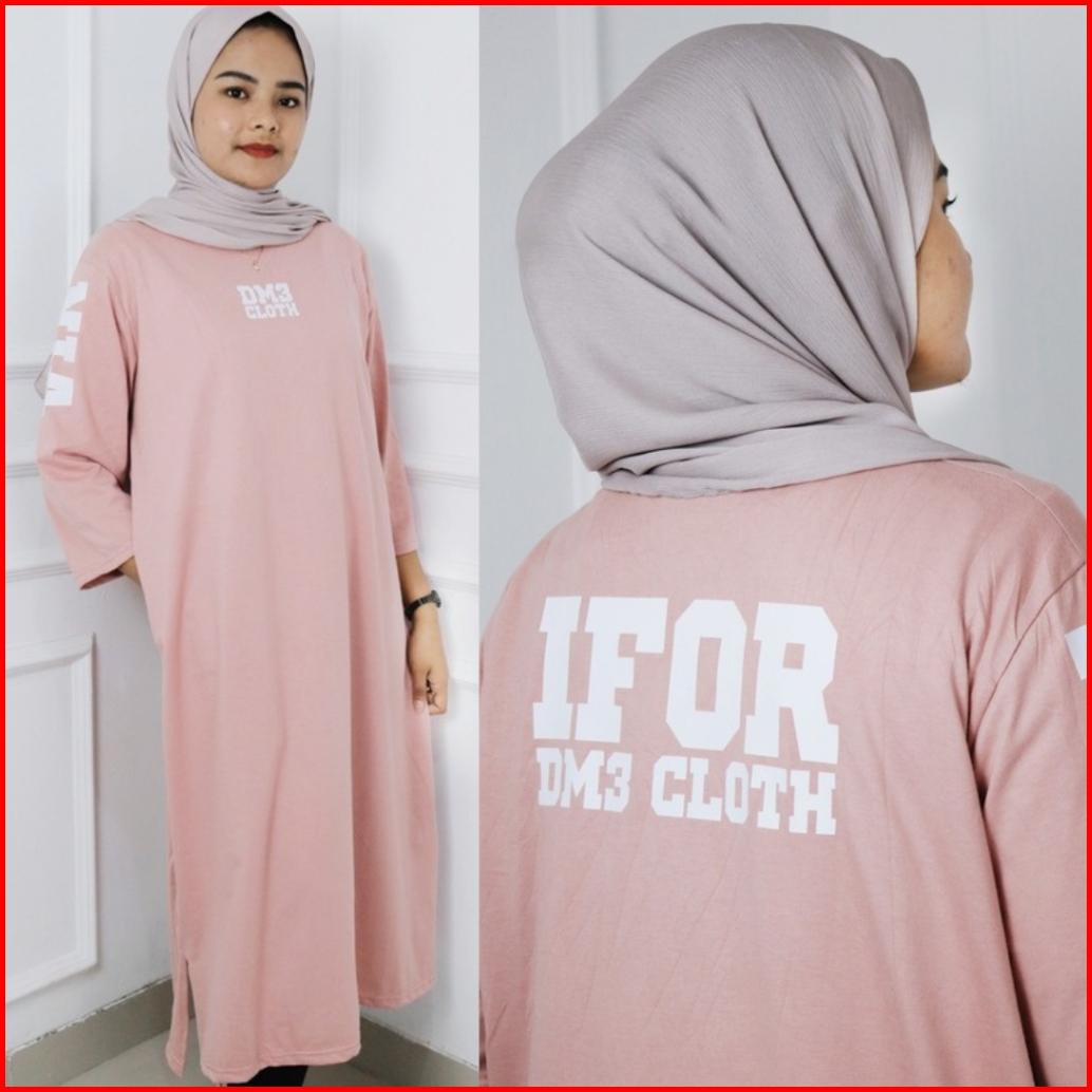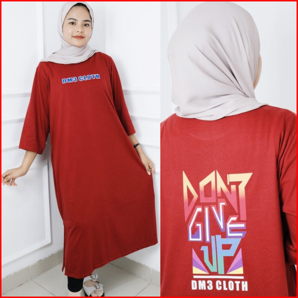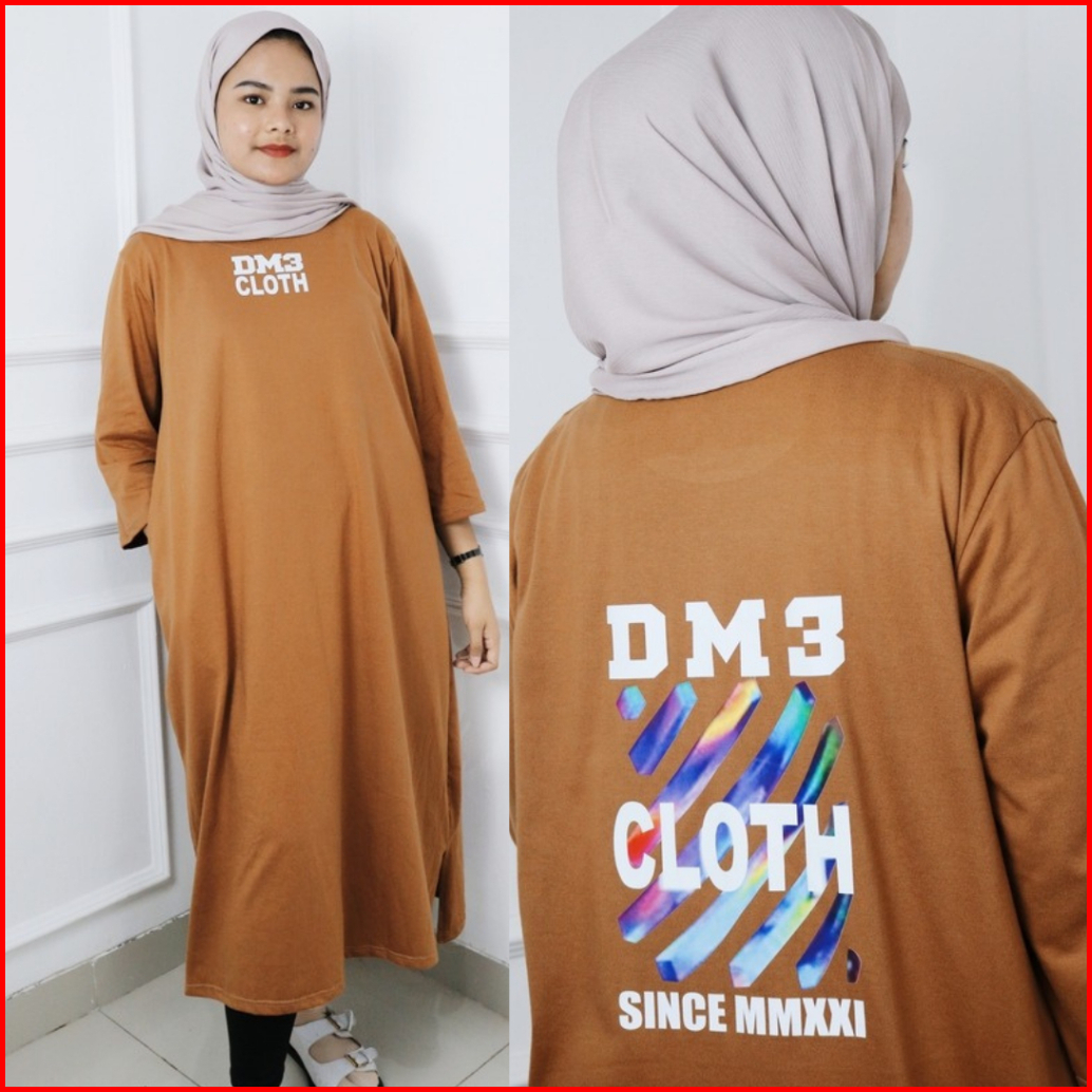 Gamis Wanita Kekinian Dm3 Midi Dress Bo Bahan Kaos Katun Combed 24s Aplikasi Sablon Size S M L Xl Xxl Ld 90-120 Cm Gamis