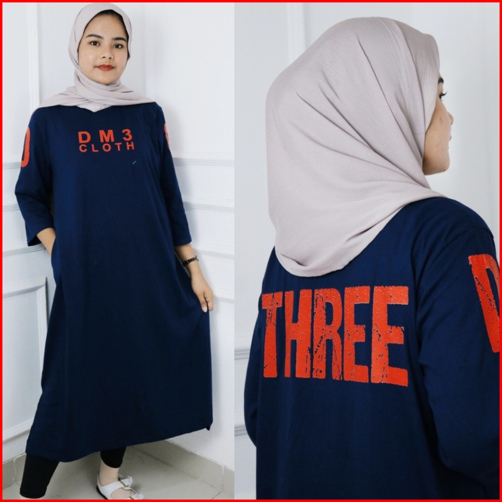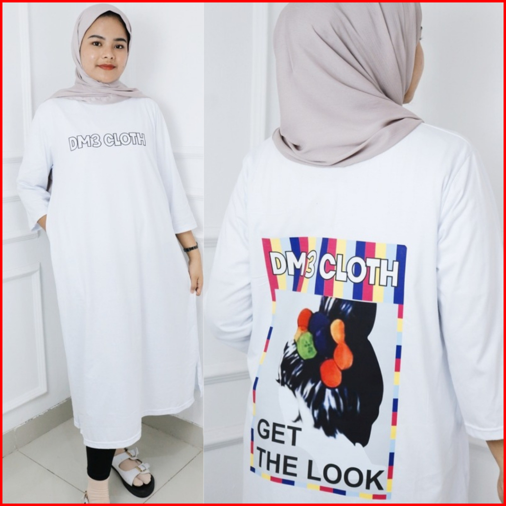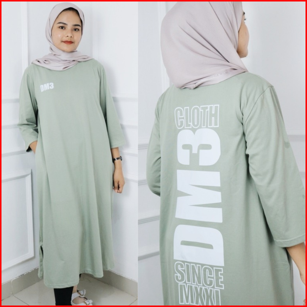 Gamis Wanita Kekinian Dm3 Midi Dress Bo Bahan Kaos Katun Combed 24s Aplikasi Sablon Size S M L Xl Xxl Ld 90-120 Cm Gamis