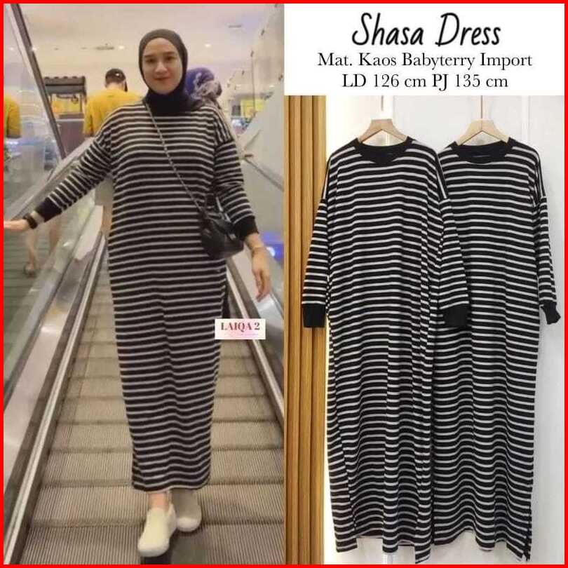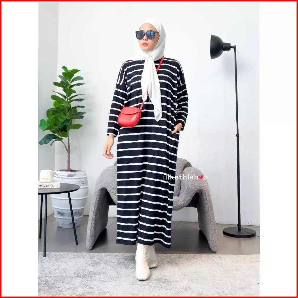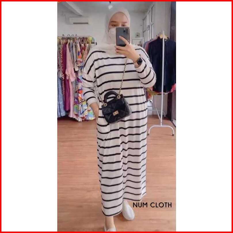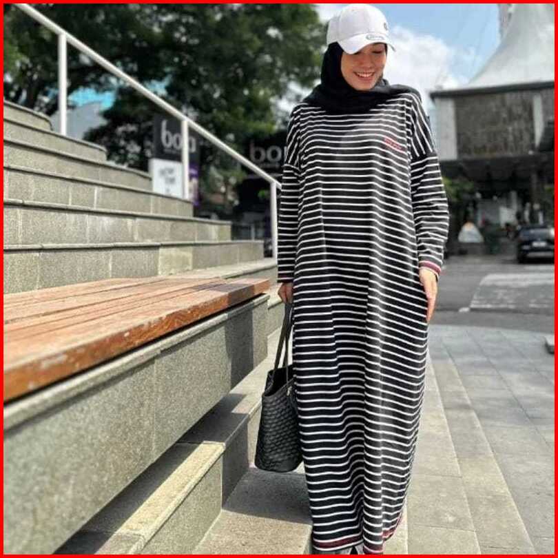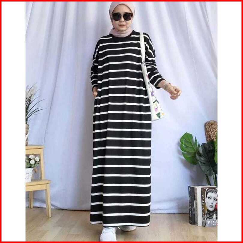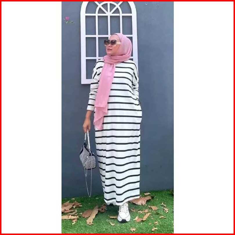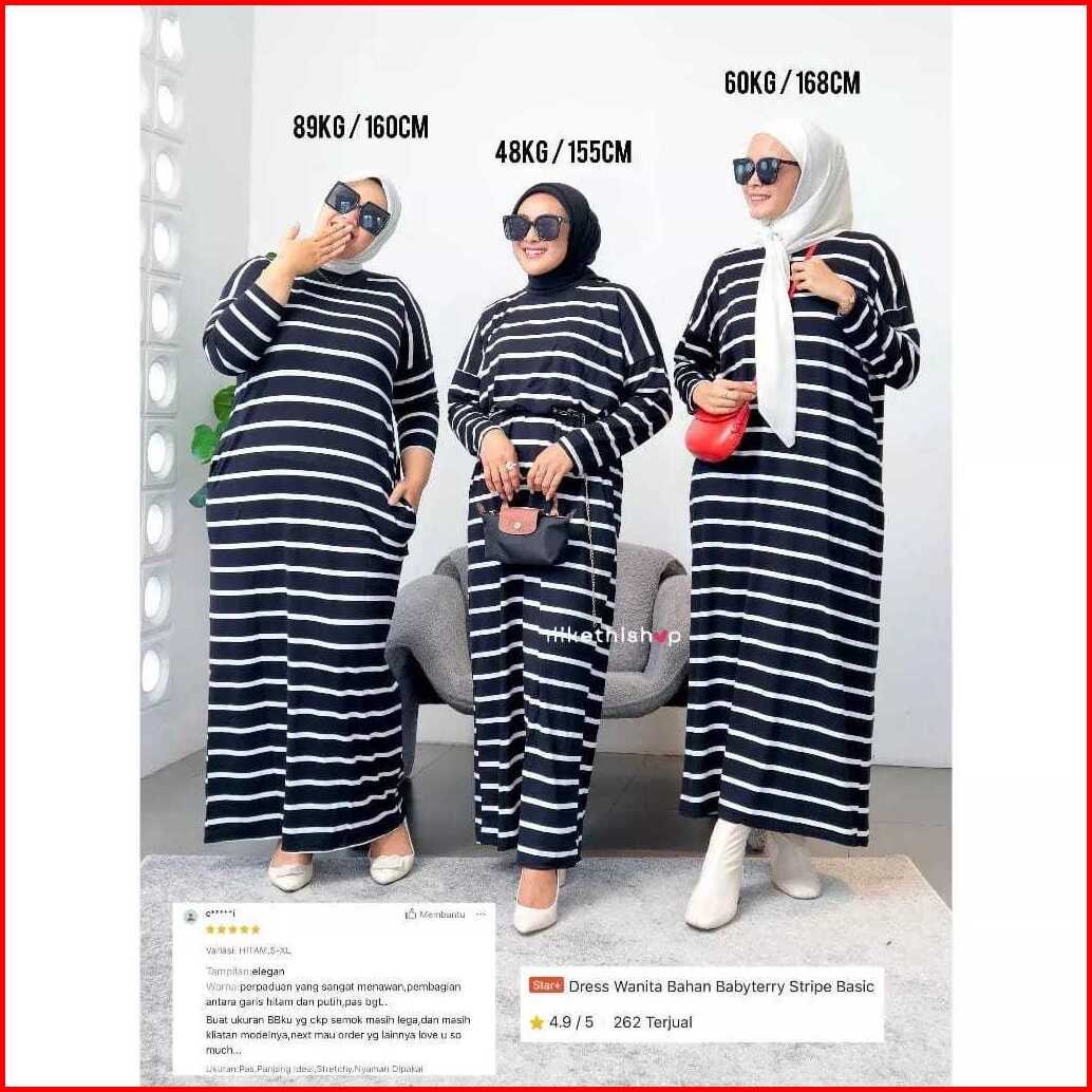 Marwah Gamis Salur Terbaru Bahan Babyteri Premium Dress Salur Pakaian Wanita Kekinian Midi Dress Salur Terlaris