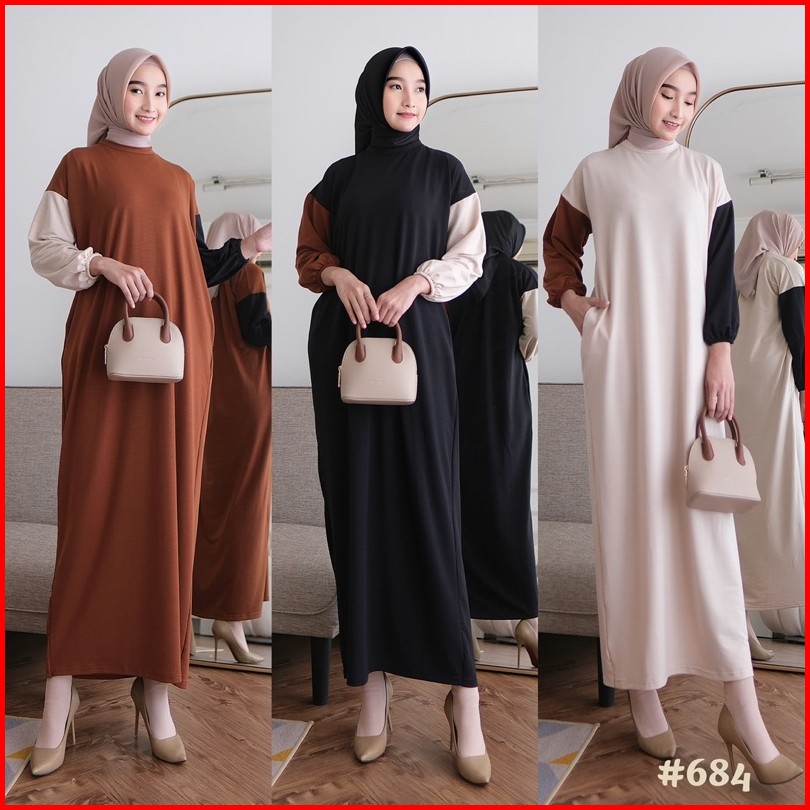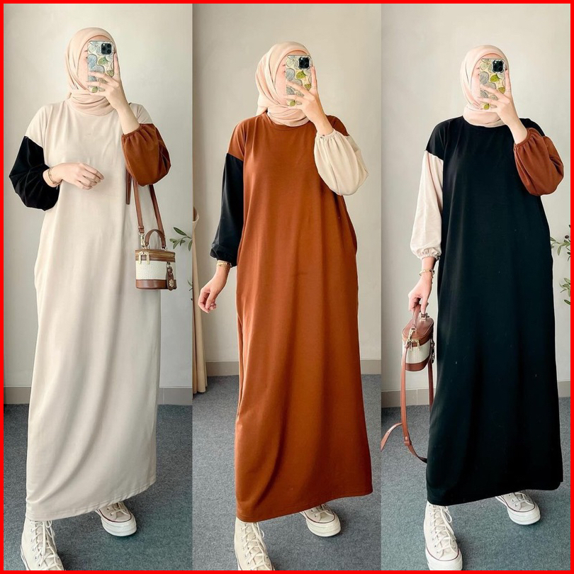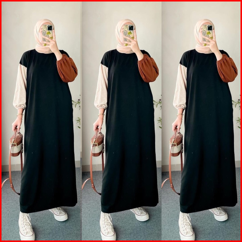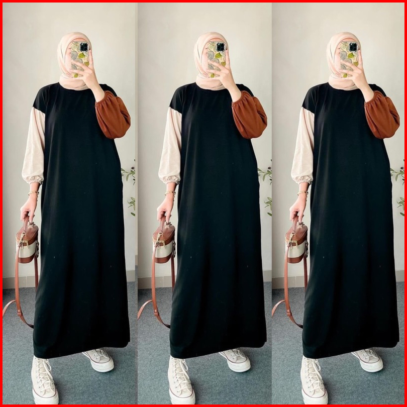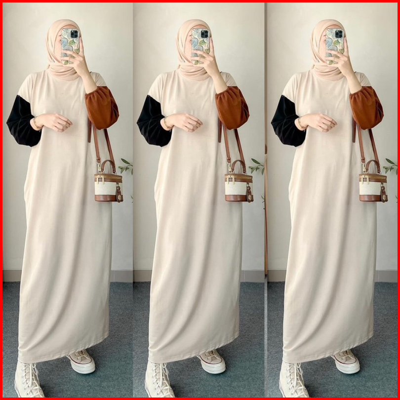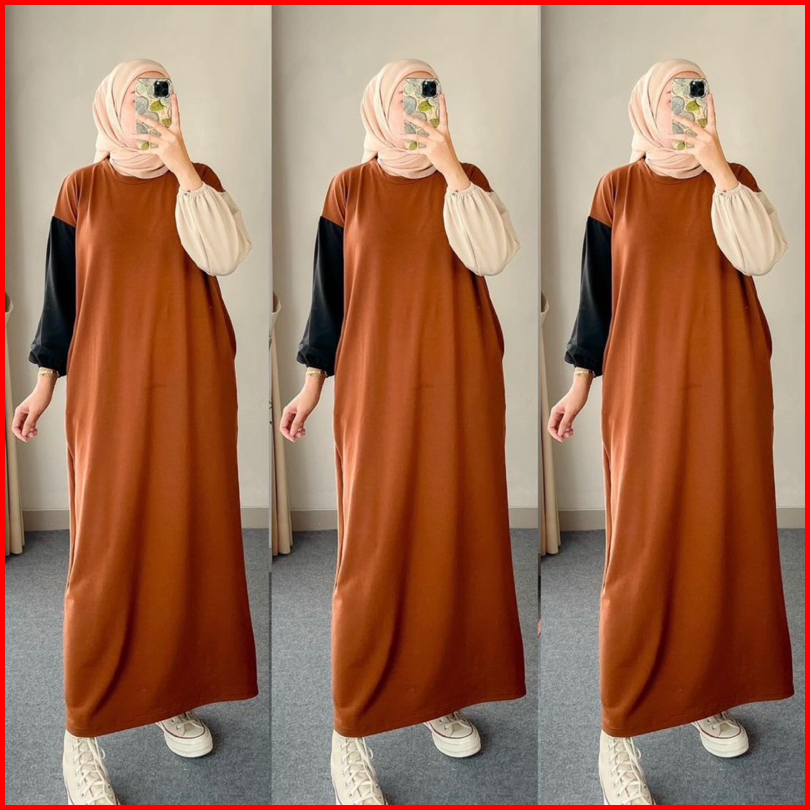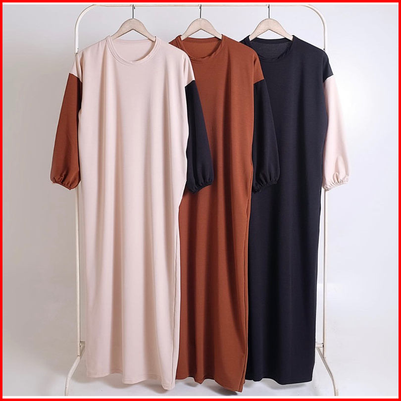 Agiya Dress Kaos Kombinasi Katun Premium Dress Polos Premium